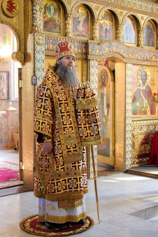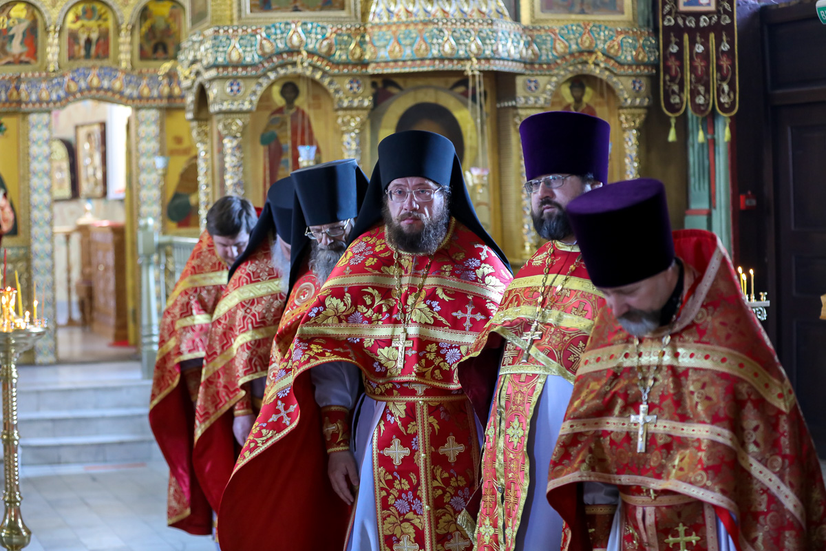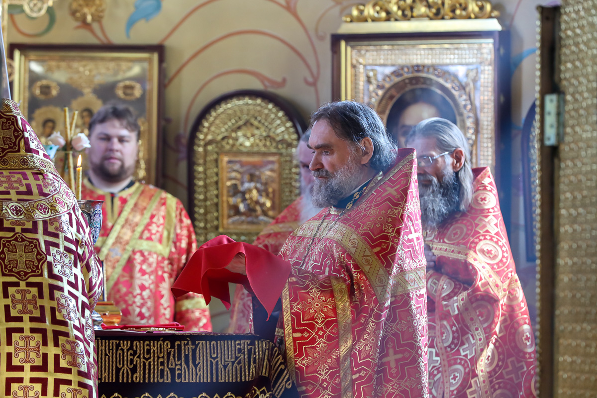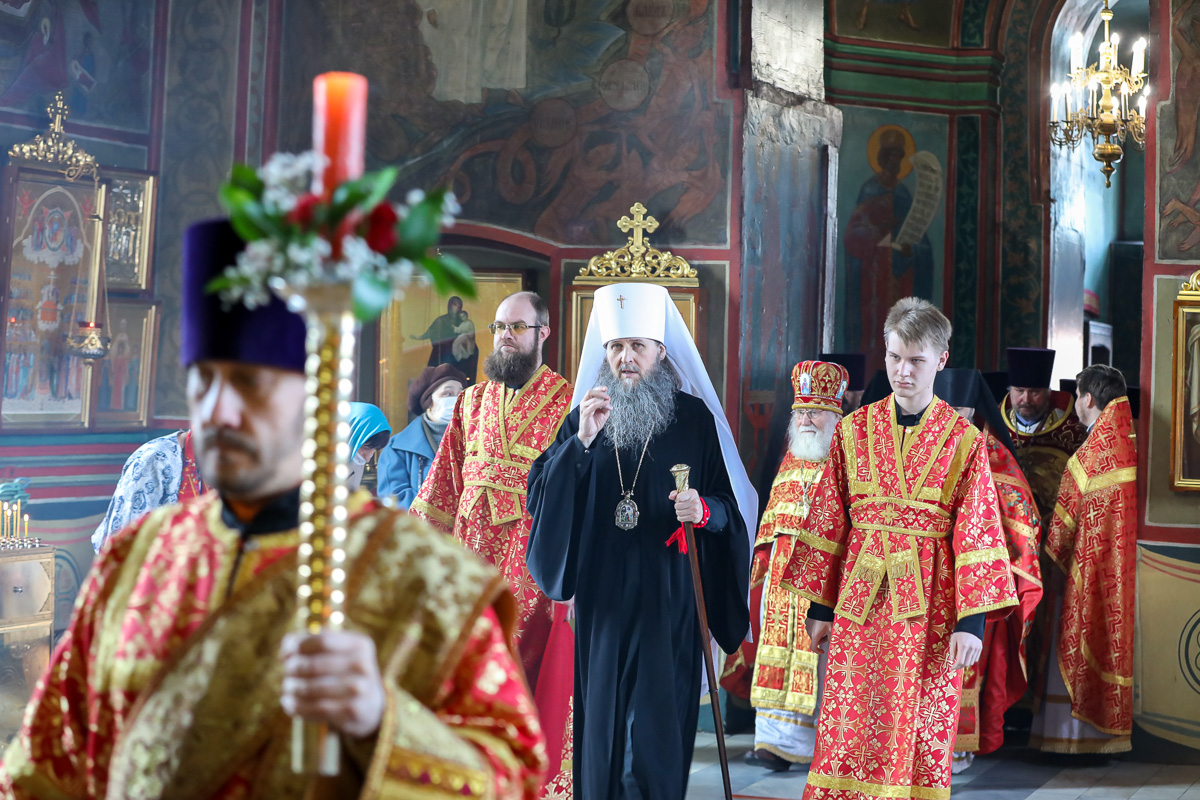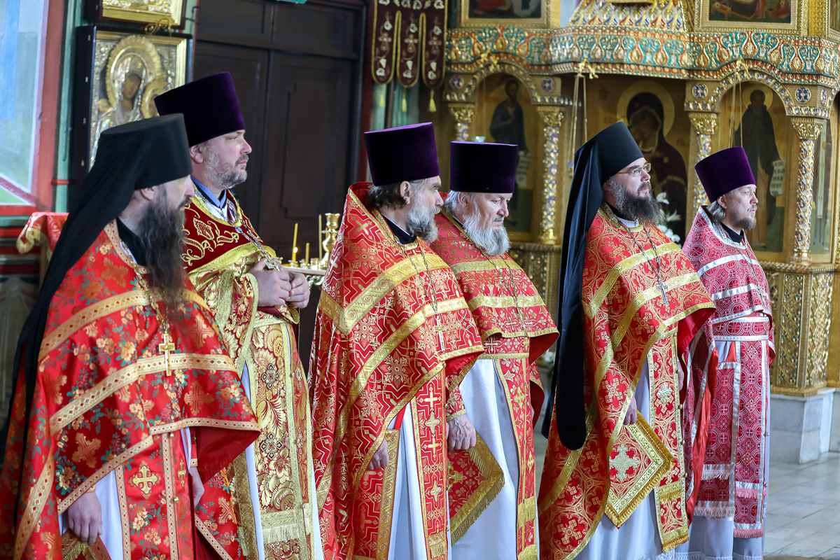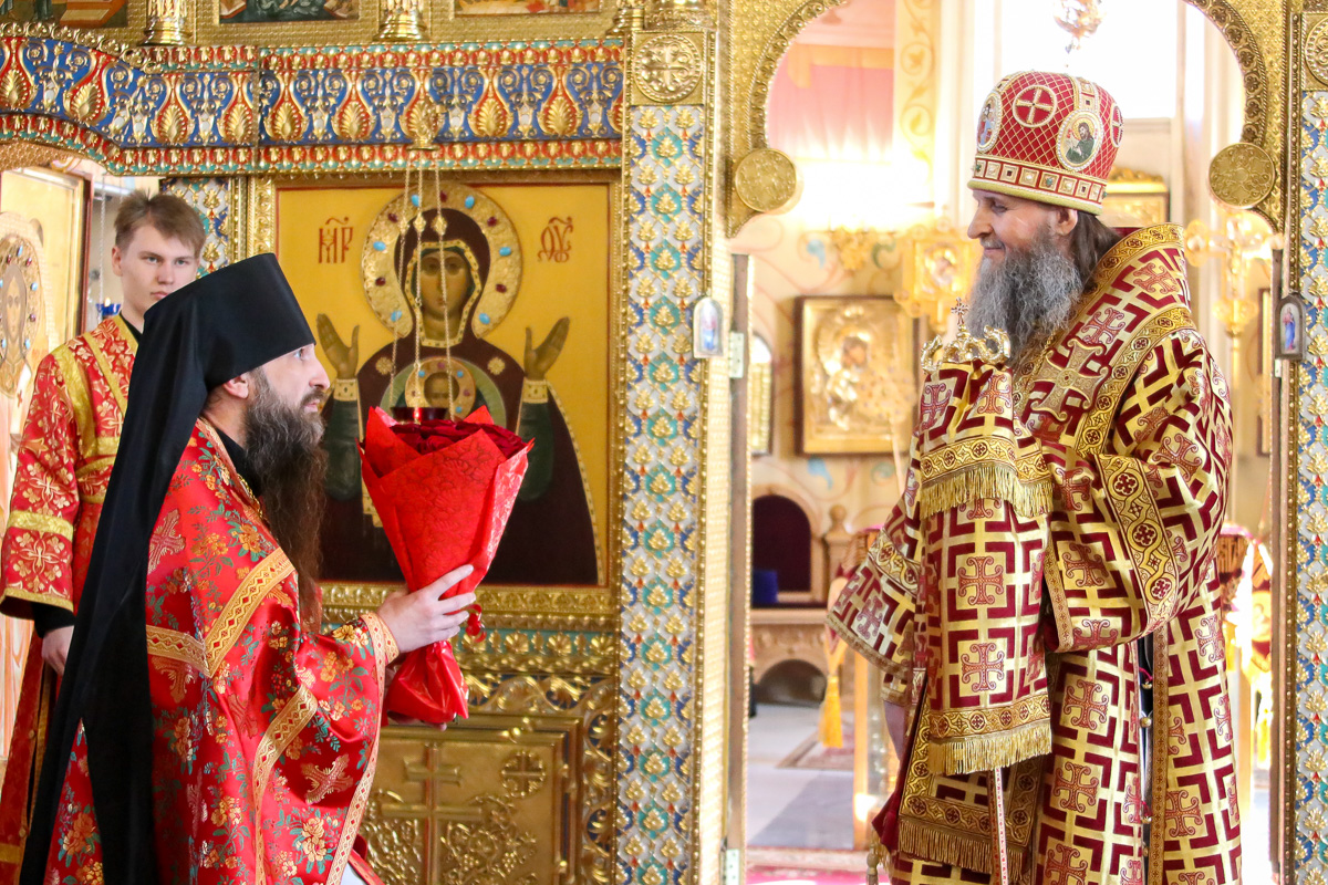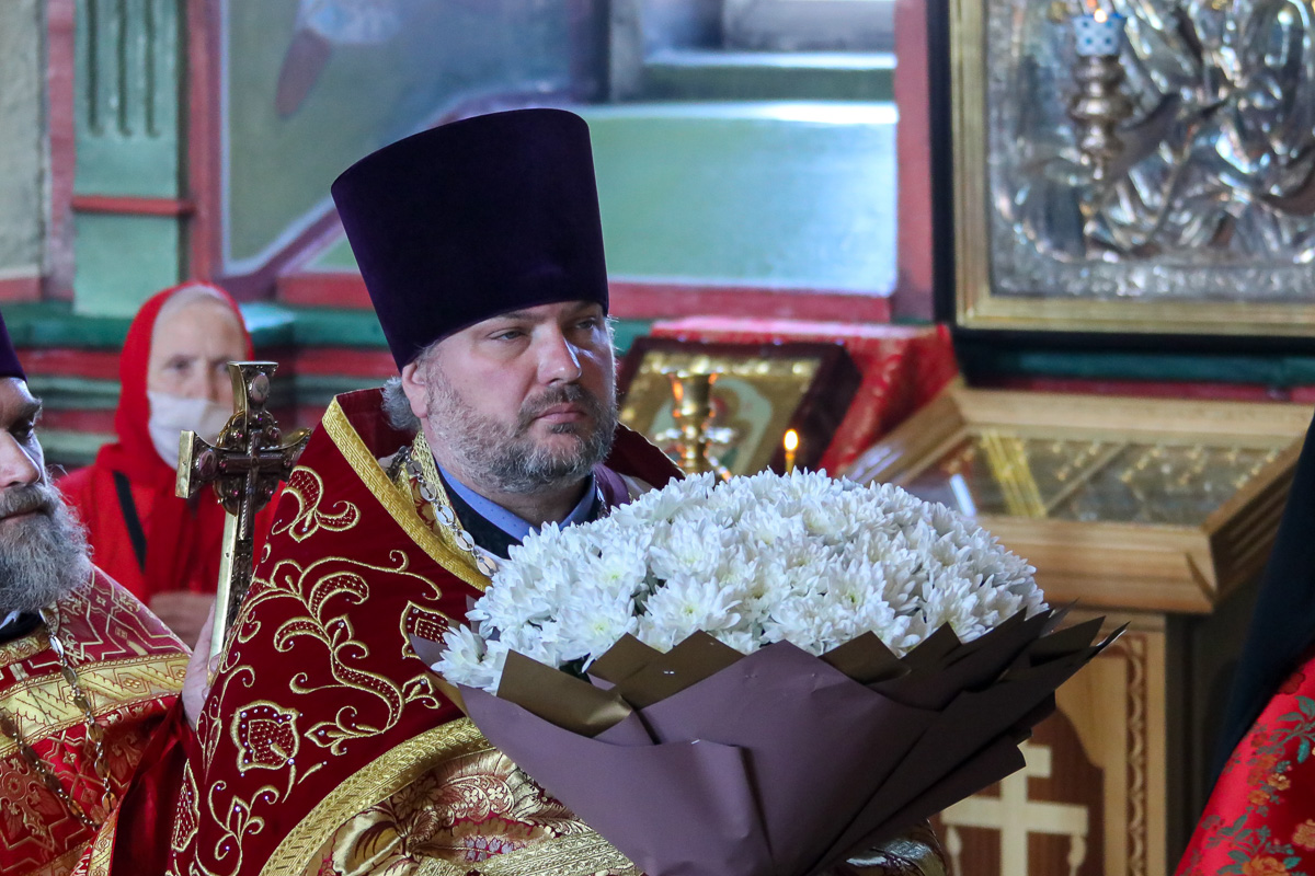 Владыке сослужили наместник Свято-Казанского Чимеевского мужского монастыря игумен Варнава (Ваулин) с братией обители, благочинные Западного и Восточного церковных округов протоиереи Михаил Артёмов и Георгий Красников, клирики этих благочиний.