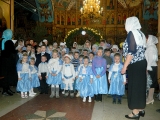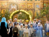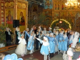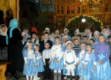 Воспитанники всех трёх учебных ступеней порадовали верующих сценкой, своим пением и чтением стихотворений.