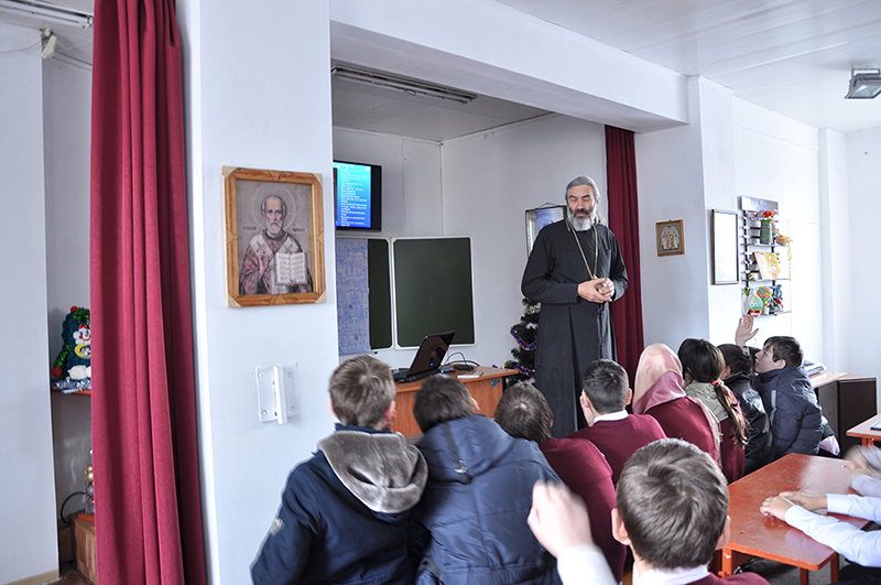 Празднику Рождества Христова была посвящена встреча благочинного Добринского ЦО протоиерея Александра Адоньева с учащимися 6-7 классов МБОУ СОШ №2 п. Добринка, которая состоялась 15 января 2016г в воскресной школе «Светоч» при Никольском храме.