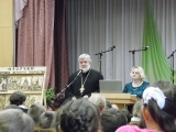 Главный специалист отдела образования Н. В. Амещенкова напомнила собравшимся, что неповторимым колоритом русской культуры и жизни, их лучшими проявлениями, мы обязаны православной вере. И если бы все люди стремились соблюдать Заповеди Божии, то жизнь наша стала бы намного добрее и счастливее.