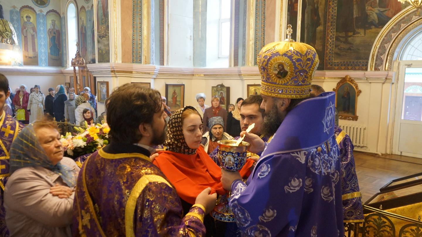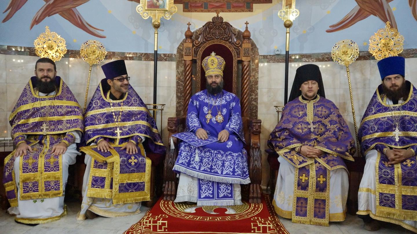 Несмотря на пасмурную и дождливую погоду, духовенство и прихожане собора торжественно встретили Архипастыря.