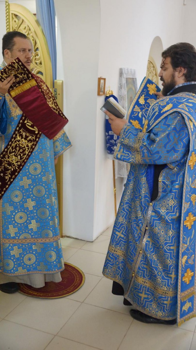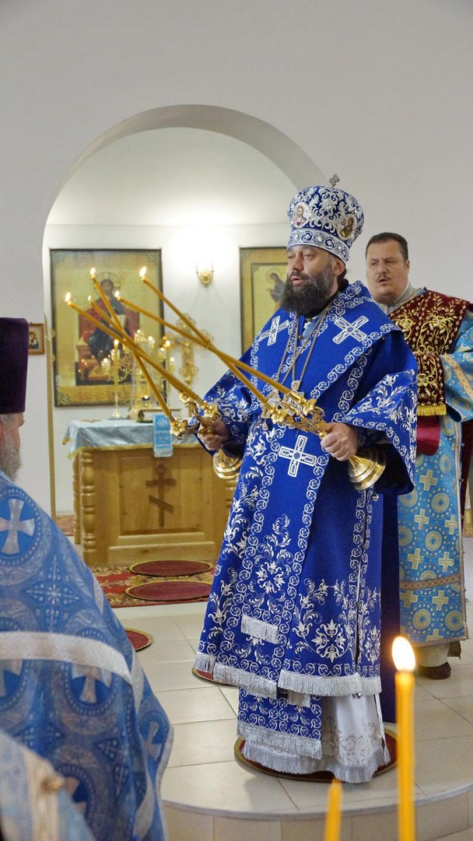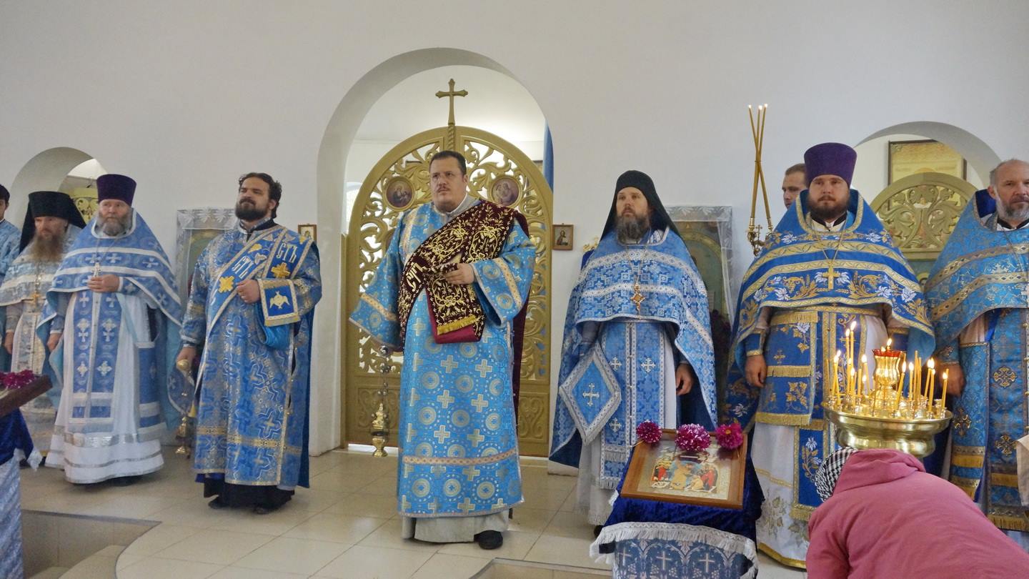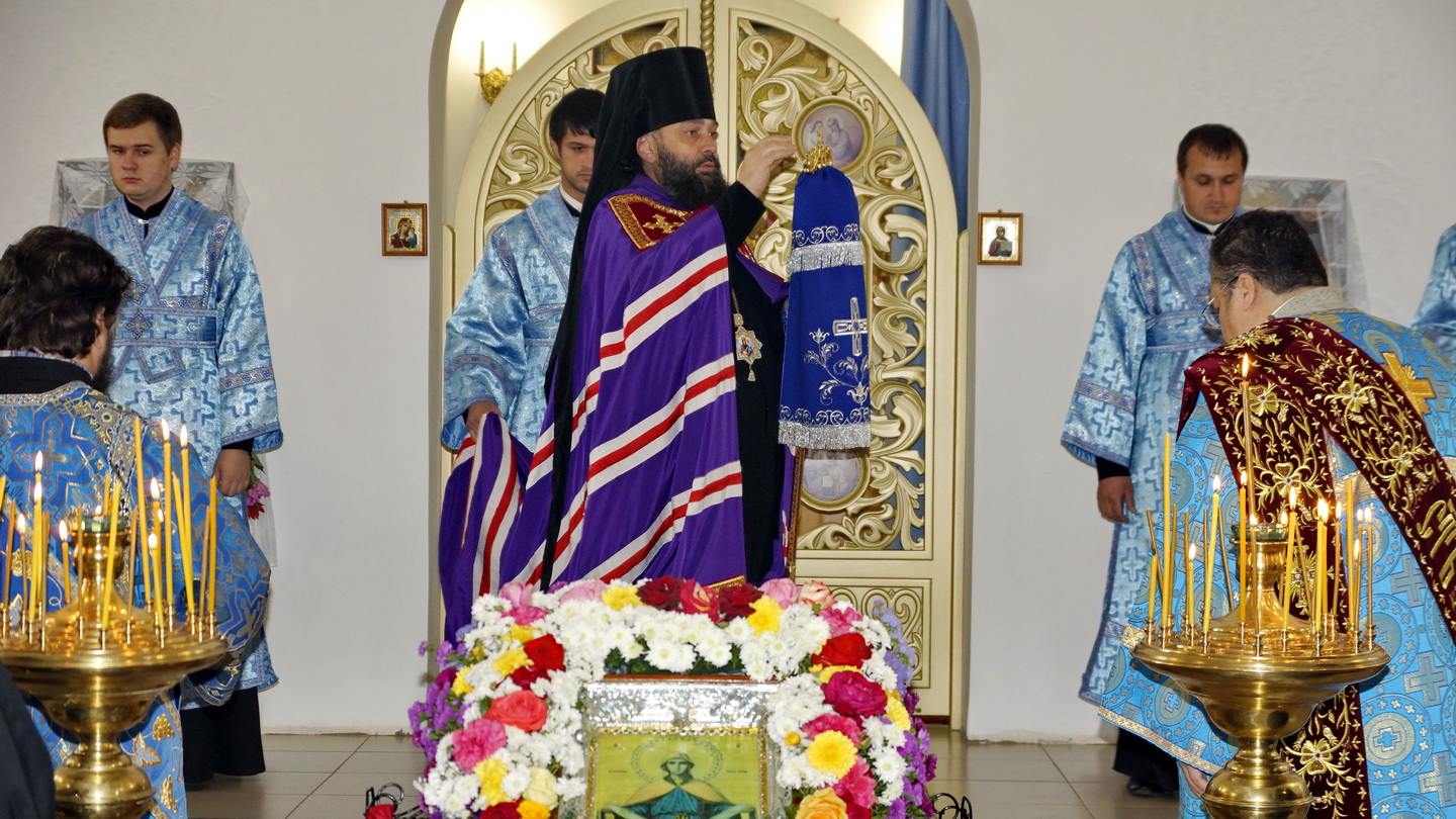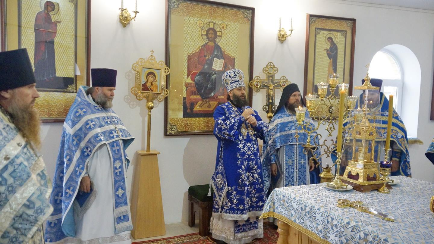По заамвонной молитве был совершен молебен по случаю Престольного дня и в узах темниц находящихся.