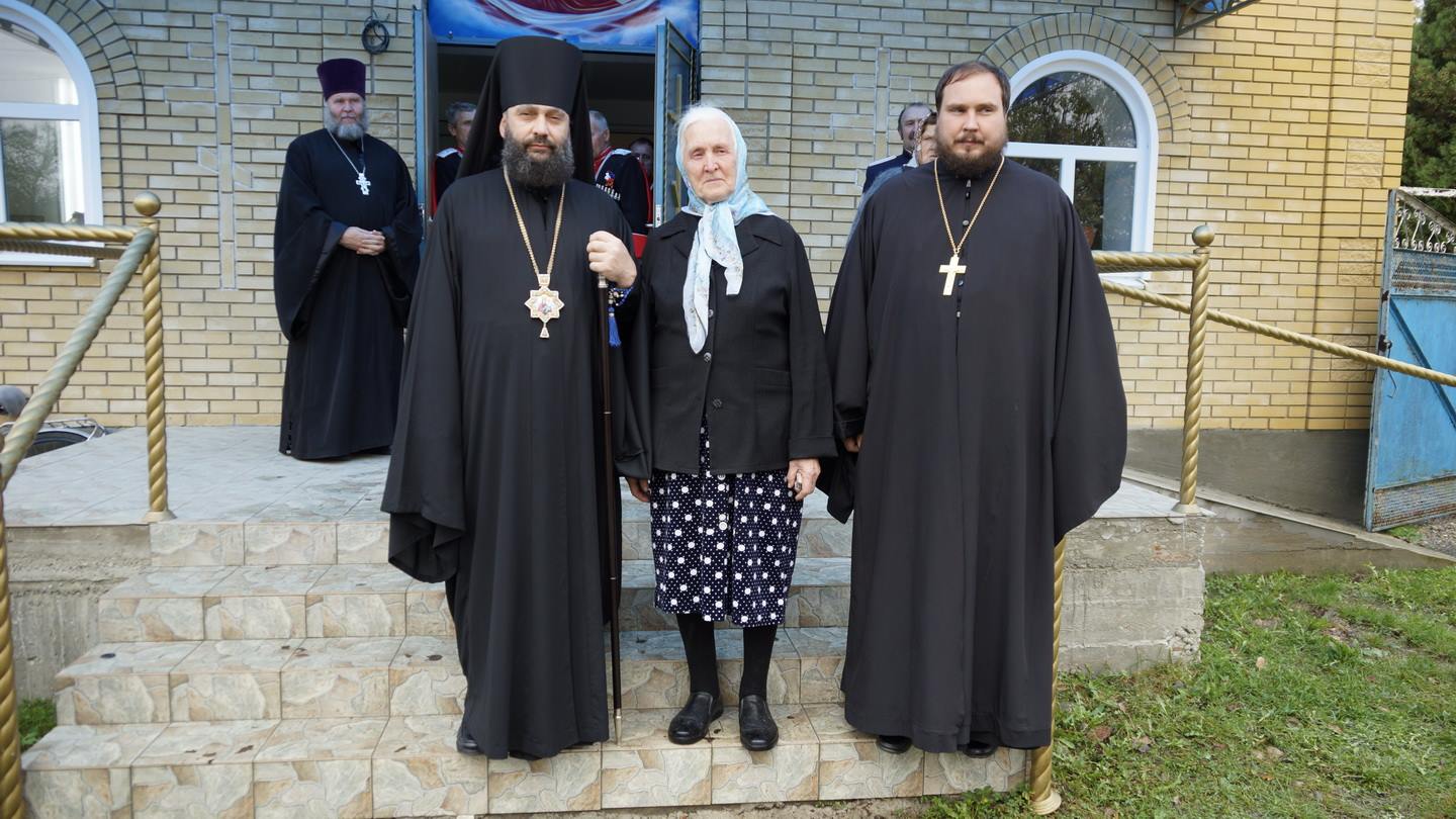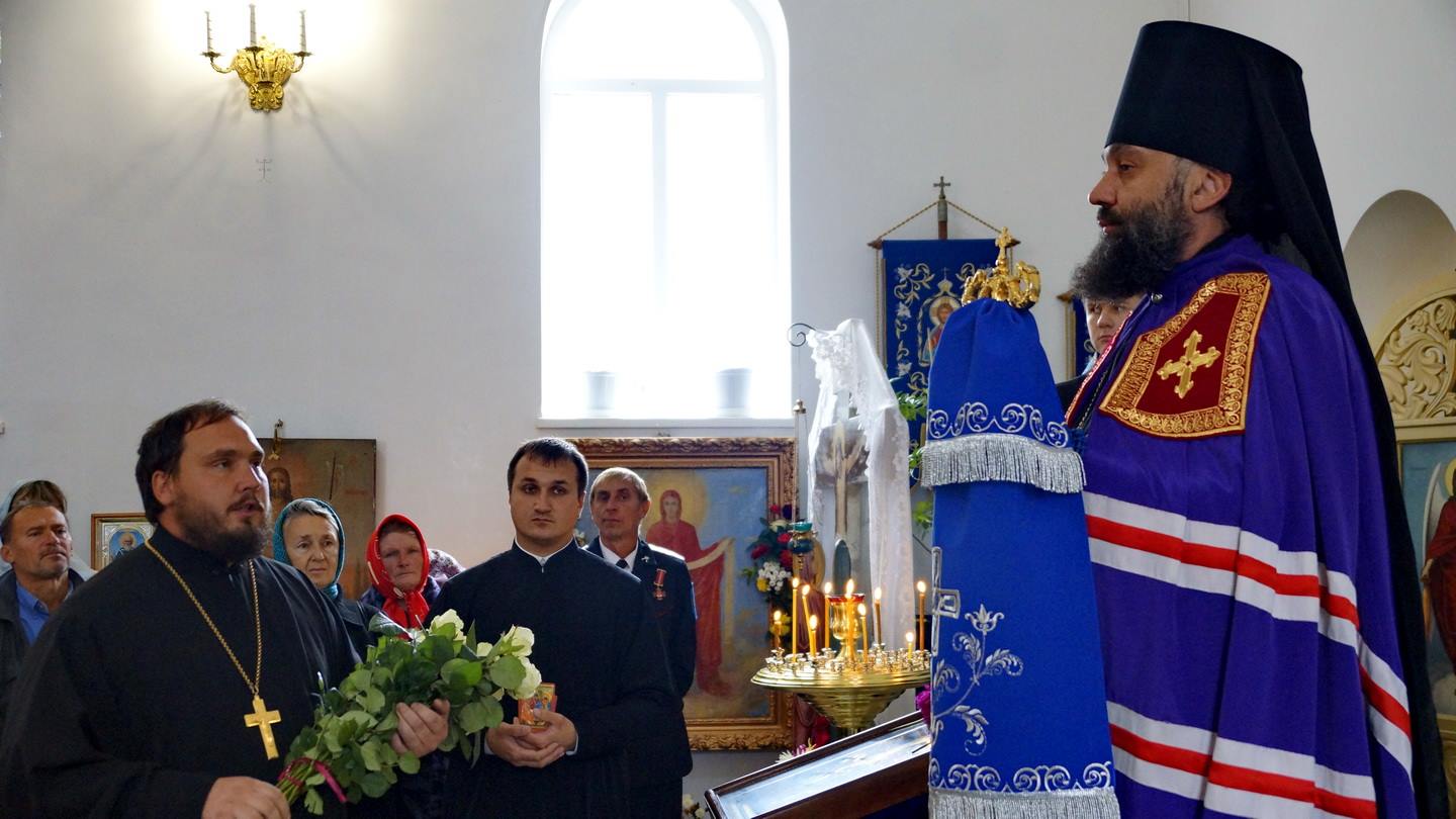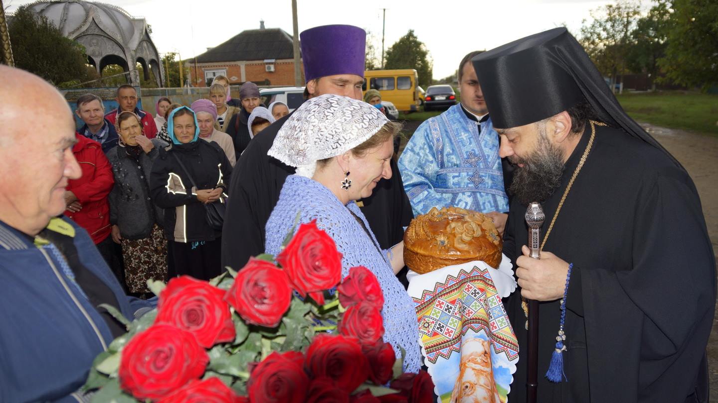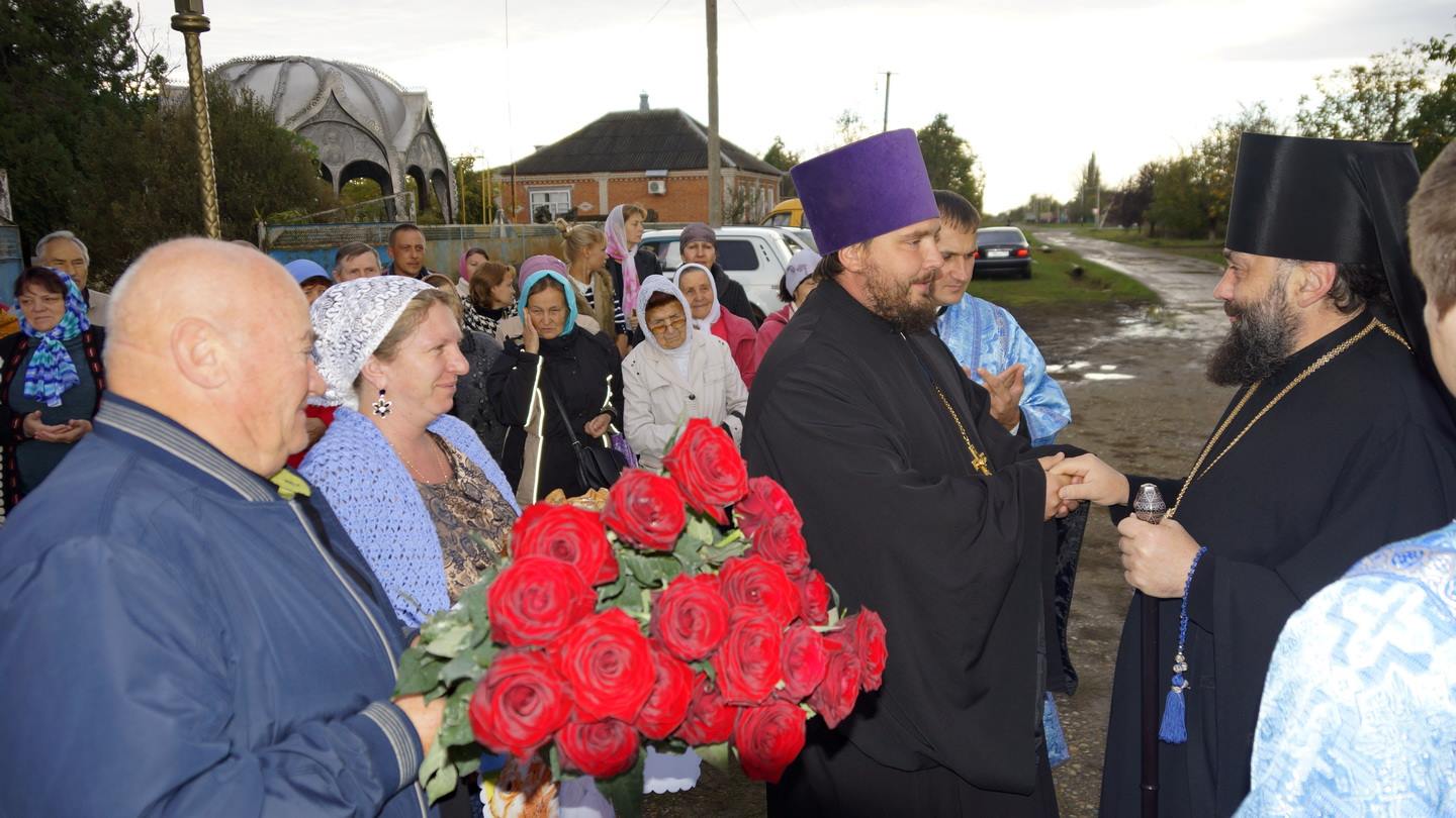 В завершении владыку поздравили настоятель Свято-Покровского храма иерей Андрей Тоцкий и глава фермерского хозяйства Кудишин Владимир Иванович. Они рассказали о ходе строительства храма и поблагодарили Его Преосвященство за архипастырское и молитвенное окормление в этом послушании.
