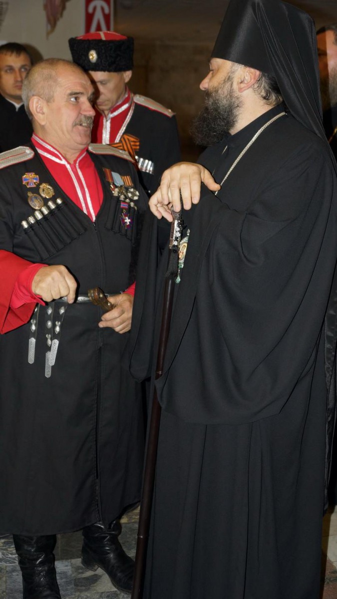 Преосвященный владыка поблагодарил руководителей края и Кубанского казачества за высокую награду и за особое внимание к Православной Церкви, подчеркнув, что казачество всегда являлось оплотом российского государства в деле защиты Отечества и воспитания подрастающего поколения в духовно-нравственных и патриотических традициях. Истинная вера в Господа Христа, Любовь к Отечеству, готовность беззаветно служить народу — вот вечные скрепы единого братства кубанских казаков.