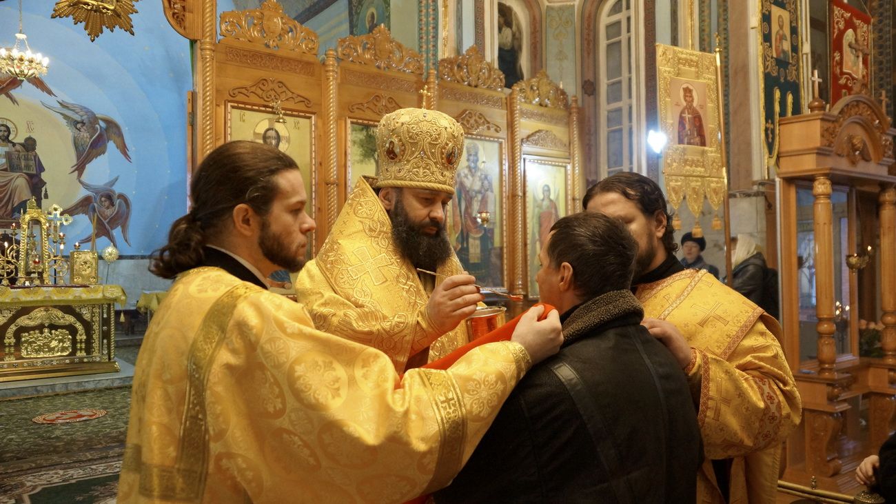 На запричастном стихе проповедь произнес штатный священник Свято-Троицкого кафедрального собора иеромонах Евсевий (Архангельский).