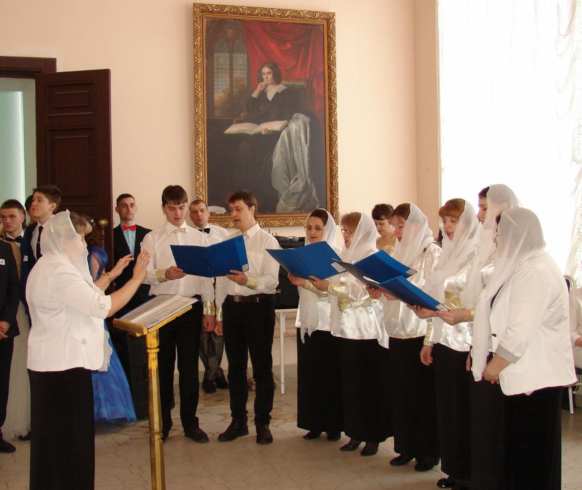 Затем приуроченная к празднику концертная программа: духовное пение церковного хора под руководством матушки Марины. Хор исполнил: Веделя - «Царю Небесный», Копылова - «Ныне отпущаеши»; Валяева - «Стихиры Сретению Господню». И вновь танцы, которые сменялись бальными играми, обучением светскому этикету.