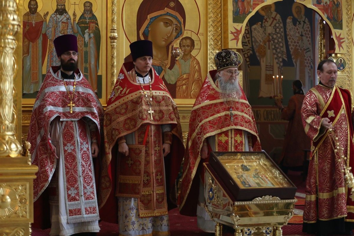 Владыке сослужили: секретарь Епархиального управления иеромонах Серафим (Пасанаев), благочинный Йошкар-Олинского церковного округа протоиерей Андрей Норкин, настоятель храма митрофорный протоиерей Евгений Кутырев, клирик храма священник Иоанн Кристев, настоятель собора Смоленский иконы Божией Матери г. Козьмодемьянска иерей Алексий Евсеев, настоятель храма Сретения Господня с. Кучки иерей Алексий Вязов, настоятель храма святителя Николая Мирликийского, чудотворца пос.Мариец иерей Николай Аникин.