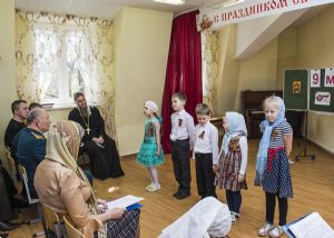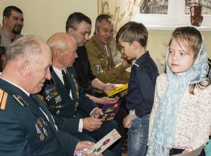 После выступления воспитанников Воскресной школы, ответное слово держали ветераны. Почётные гости праздника подарили детям сладкие подарки, поделились своими впечатлениями и пожелали присутствующим крепко любить свою страну, преуспевать в труде и учёбе, с заботой и вниманием относиться к родным и близким.