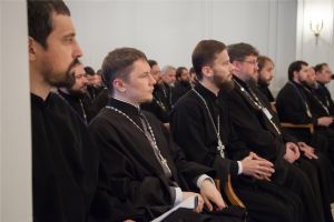 Перед началом занятий в храме Усекновения главы Иоанна Предтечи под Бором Патриаршего Черниговского подворья в Москве был совершен молебен. Возглавил богослужение заместитель председателя Синодального отдела религиозного образования и катехизации игумен Митрофан (Шкурин).