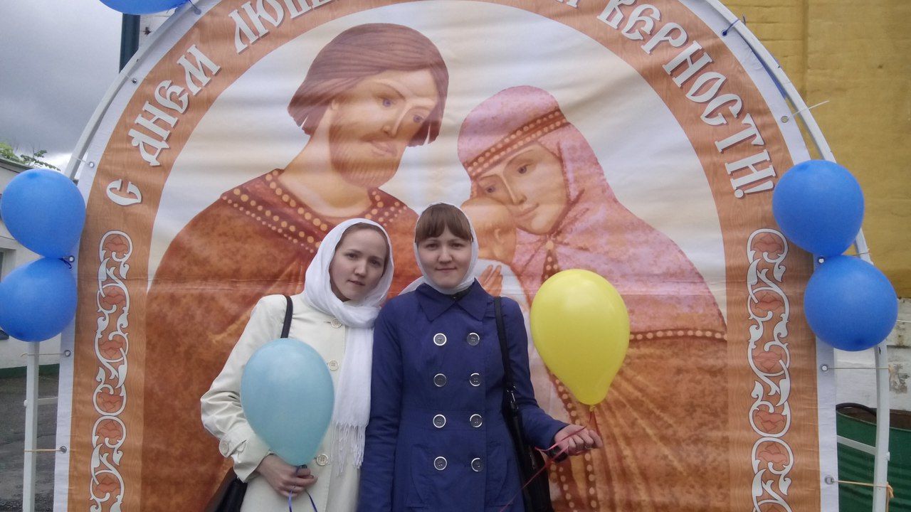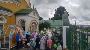 С самого утра во дворе храма дети и учителя наряжали сцену с изображением Муромских супругов, шарами и цветами, настраивали технику и устанавливали колонки и микрофоны.