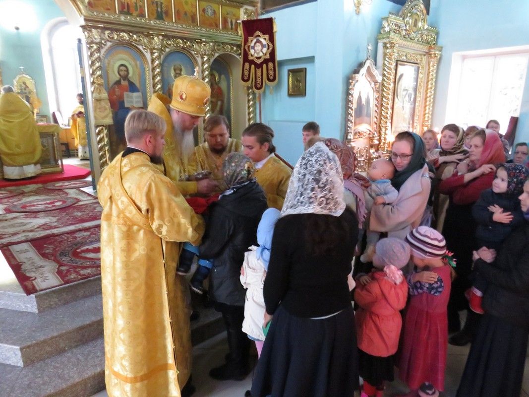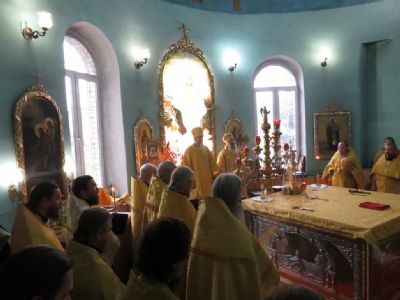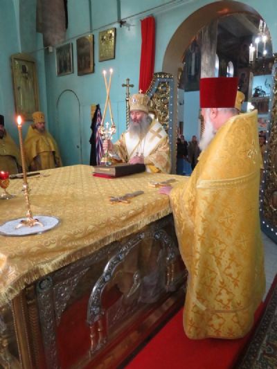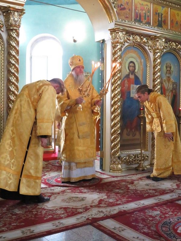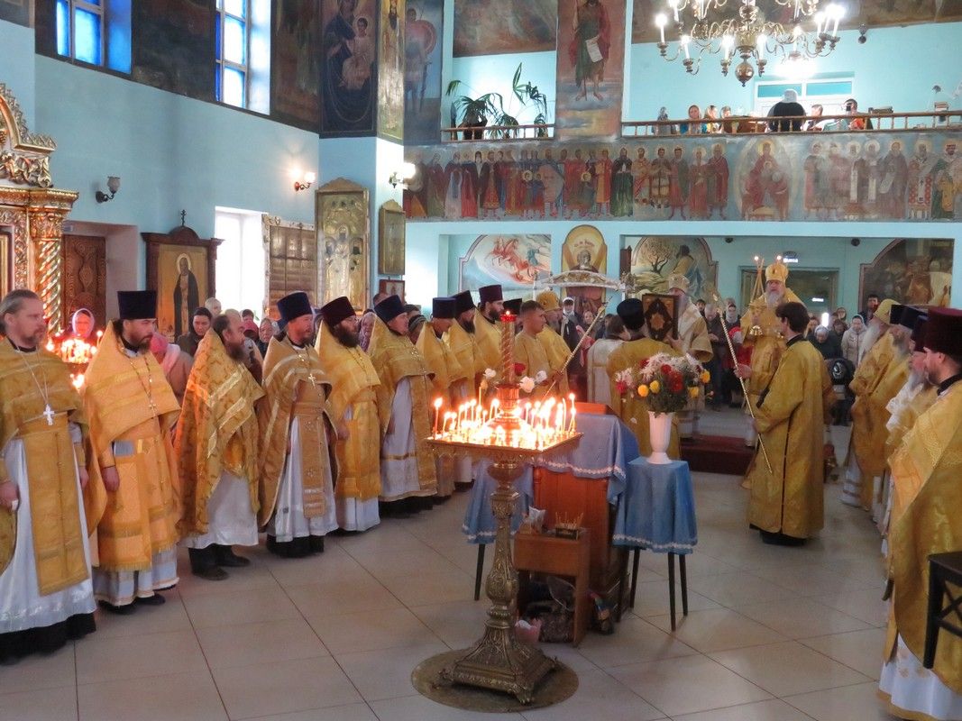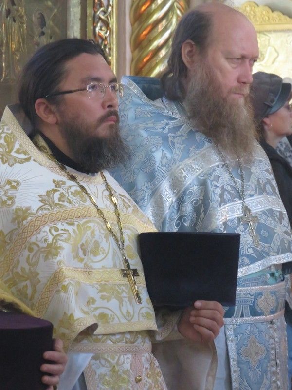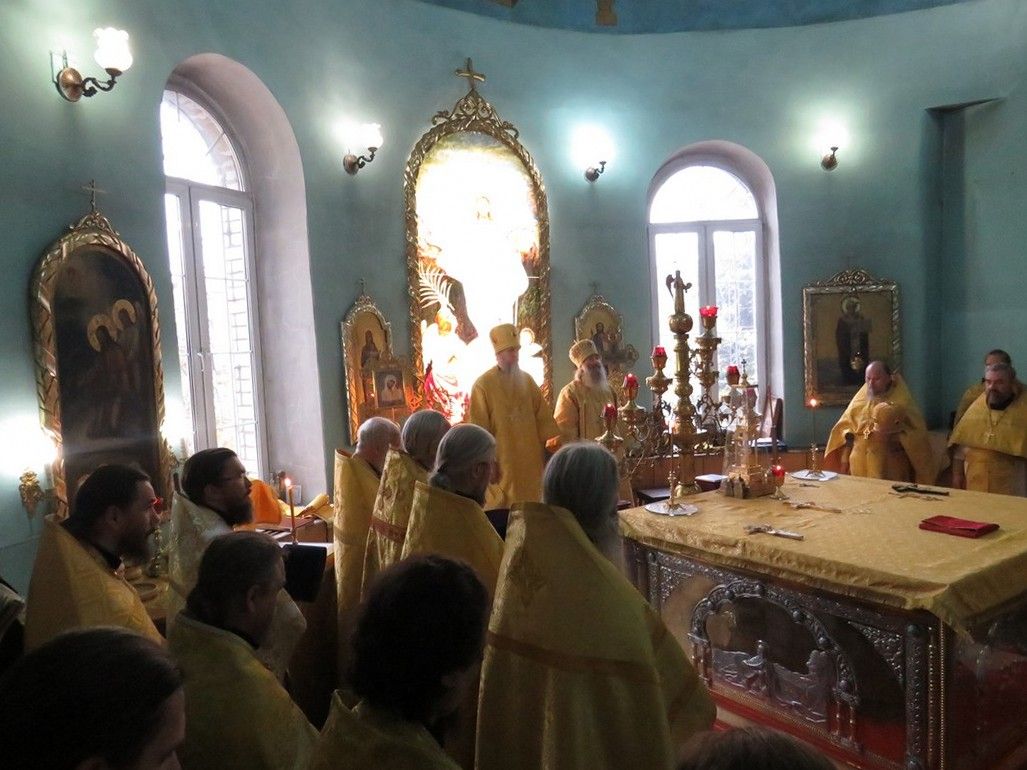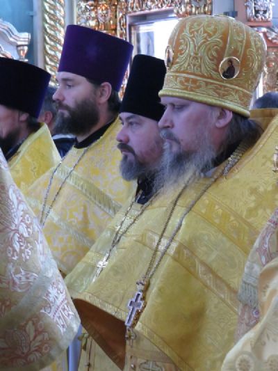 За богослужением архиереям сослужили секретарь епархиального управления, настоятель храма в честь иконы Божией Матери «Всех скорбящих Радость» г. Волжска протоиерей Александр Михайлов, благочинный Волжского церковного округа, ключарь Никольского кафедрального собора г. Волжска протоиерей Виталий Михеев, благочинный Северного церковного округа, настоятель храма Архангела Михаила п. Сернур протоиерей Владимир Власов и духовенство епархии.