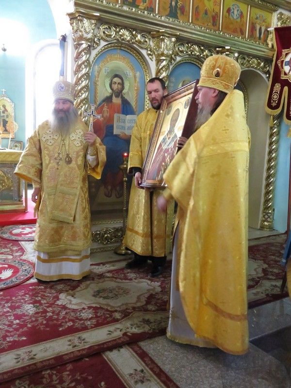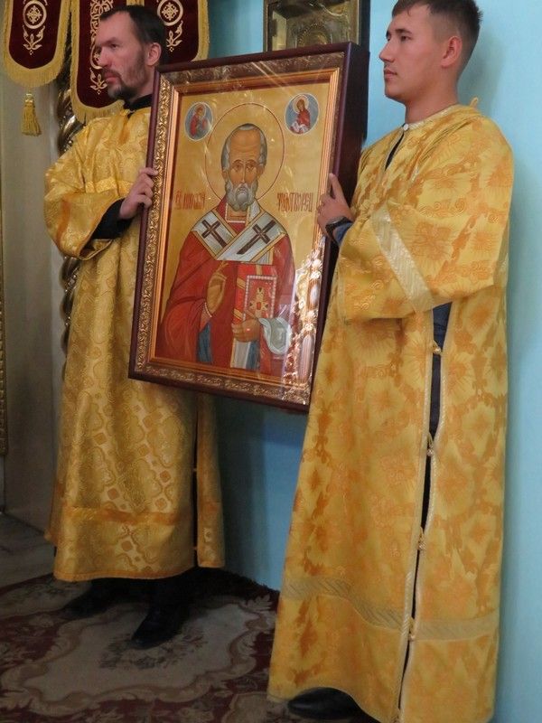 Секретарь епархиального управления протоиерей Александр Михайлов от имени духовенства и паствы Волжской епархии преподнес епископу Феофану образ святителя Николая в знак молитвенного предстательства святителя над марийской землей и попросил святых молитв.