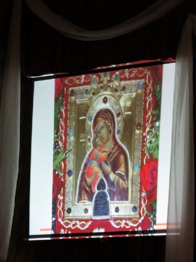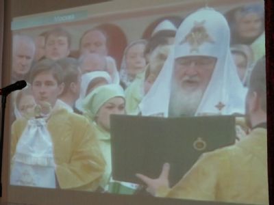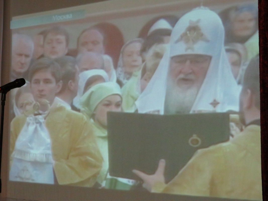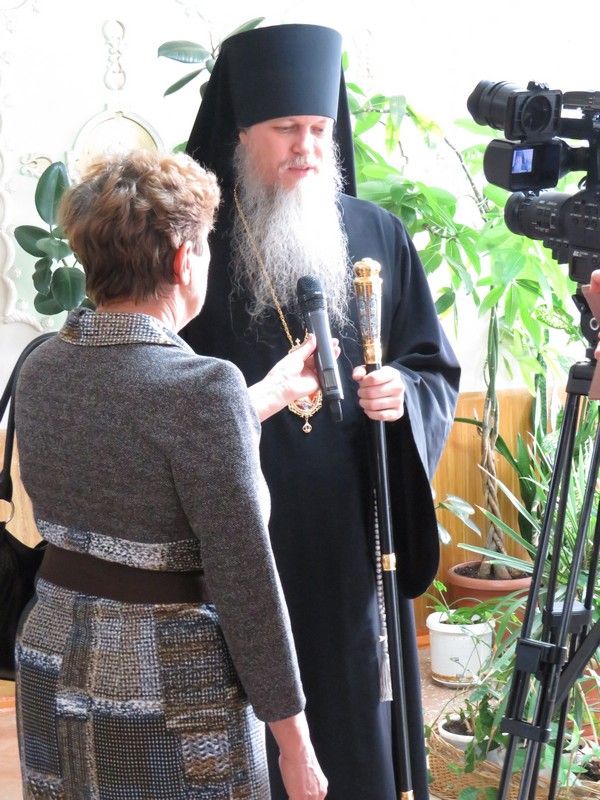 После демонстрации фрагмента фильма, где за Божественной литургией в Донском ставропигиальном монастыре Москвы Святейшим Патриархом Московским и всея Руси Кириллом была совершена хиротония во епископа Волжского и Сернурского архимандрита Феофана, прозвучало поздравление в адрес Преосвященнейшего Феофана в связи с высокой наградой – медалью святителя Феофана Затворника Вышенского I степени, врученной 19 сентября 2018 года.