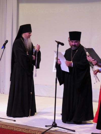 По случаю знаменательной даты были подготовлены Архиерейские грамоты – епископ Феофан торжественно вручил их в благословение за усердные труды во славу Святой Православной Церкви. Высокой награды удостоены клирики епархии – протоиерей Александр Михайлов, секретарь Волжской епархии; протоиерей Вячеслав Ершов, настоятель храма Вознесения Господня п. Новый Торъял; протоиерей Виталий Михеев, благочинный Волжского округа; протоиерей Вячеслав Михайлов, благочинный Восточного округа; протоиерей Владимир Власов, благочинный Северного церковного округа, а также руководители городских и местных властей, благоустроители, учителя воскресных школ.