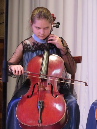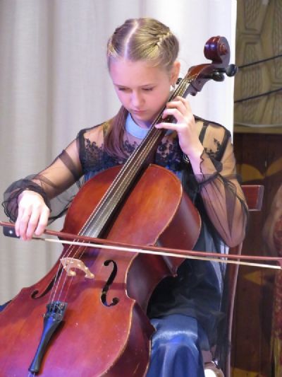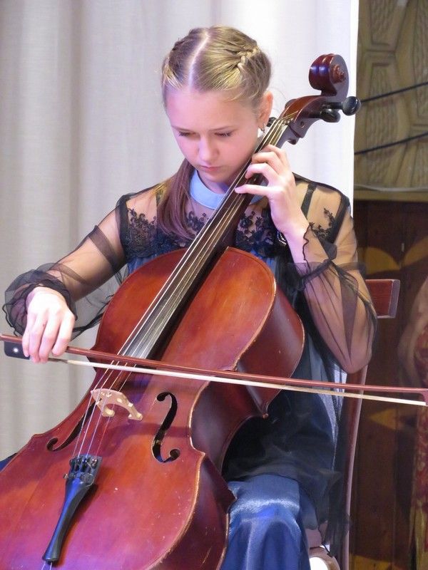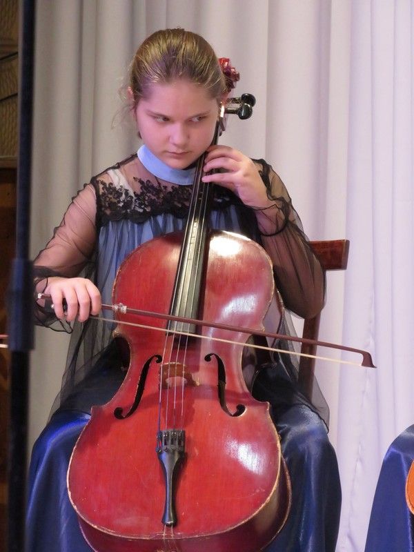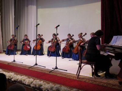 Ансамблем виолончелистов детской музыкальной школы, руководитель Равиля Авхатовна Сафиулина, было исполнено музыкальное произведение «Аве Мария».