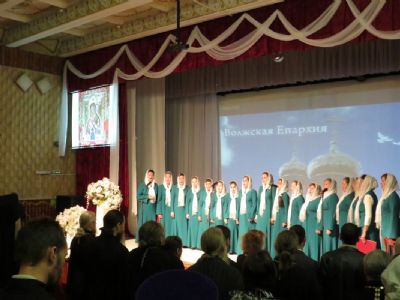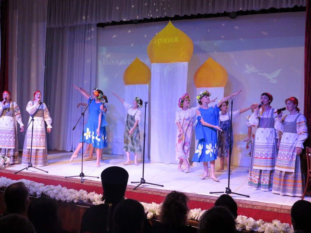 Выступления артистов сопровождались видеопроекциями – «Храмы Волжской епархии», «Нелегкий путь служения» и фрагментом фильма «Благословенные Петьялы».