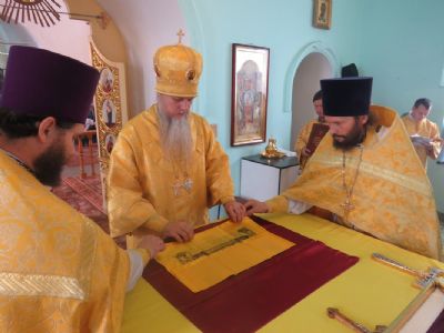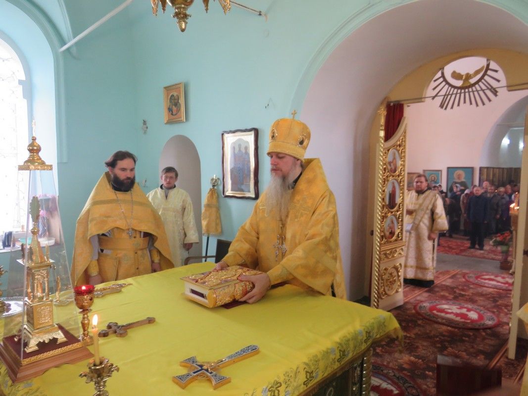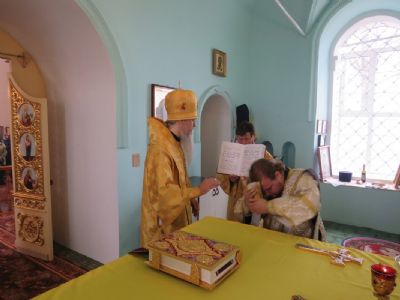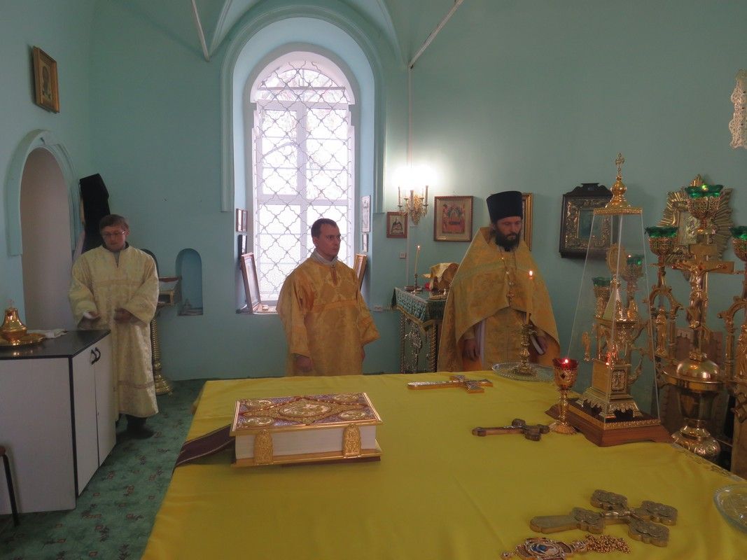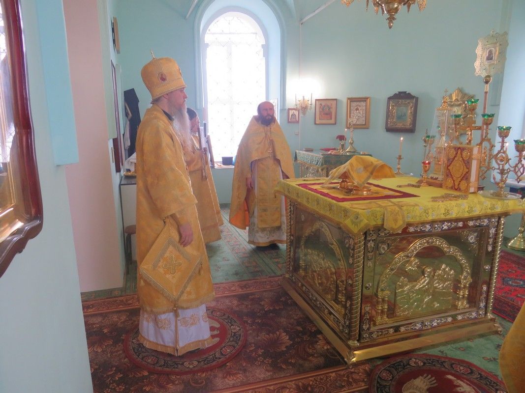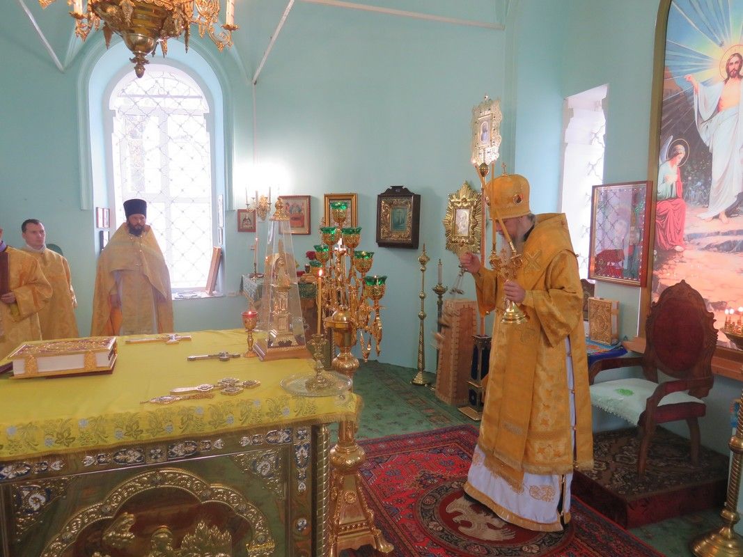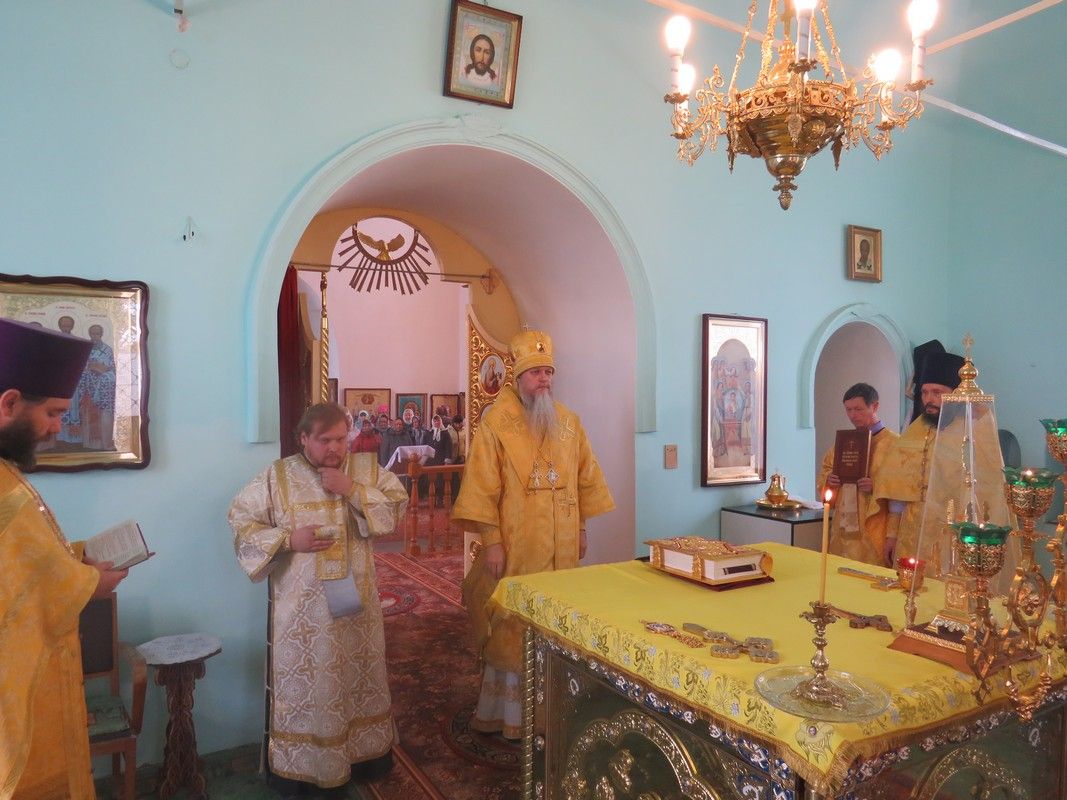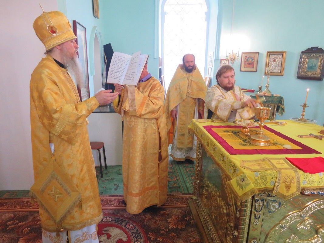 Его Преосвященству сослужили: благочинный Северного церковного округа, настоятель храма Архангела Михаила п. Сернур протоиерей Владимир Власов; настоятель Крестовоздвиженского храма с. Кукнур протоиерей Сергий Сильдушкин; клирик Никольского кафедрального собора г. Волжска диакон Иоанн Захаров.