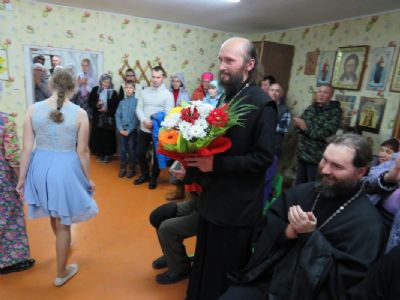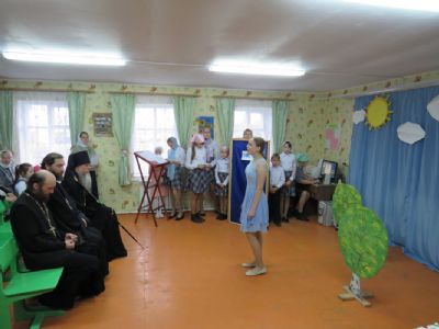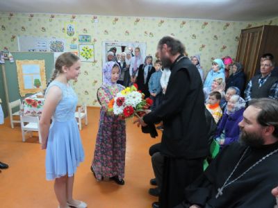 После праздничной трапезы воспитанники воскресной школы «Благо» при Крестовоздвиженском храме с. Кукнур показали архипастырю и всем собравшимся гостям представление о детстве преподобного Сергия и помощи, получаемой по молитвам к этомусвятому.