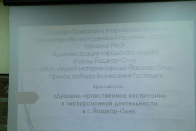 9 октября в Музее истории города Йошкар-Олы прошел круглый стол, посвященный завершению реализации проекта "Царевококшайск - град Царя Великого", получившего поддержку Международного грантового конкурса «Православная инициатива». Проект реализован при участии Администрации города Йошкар-Олы, Городского управления образования и Управления культуры.