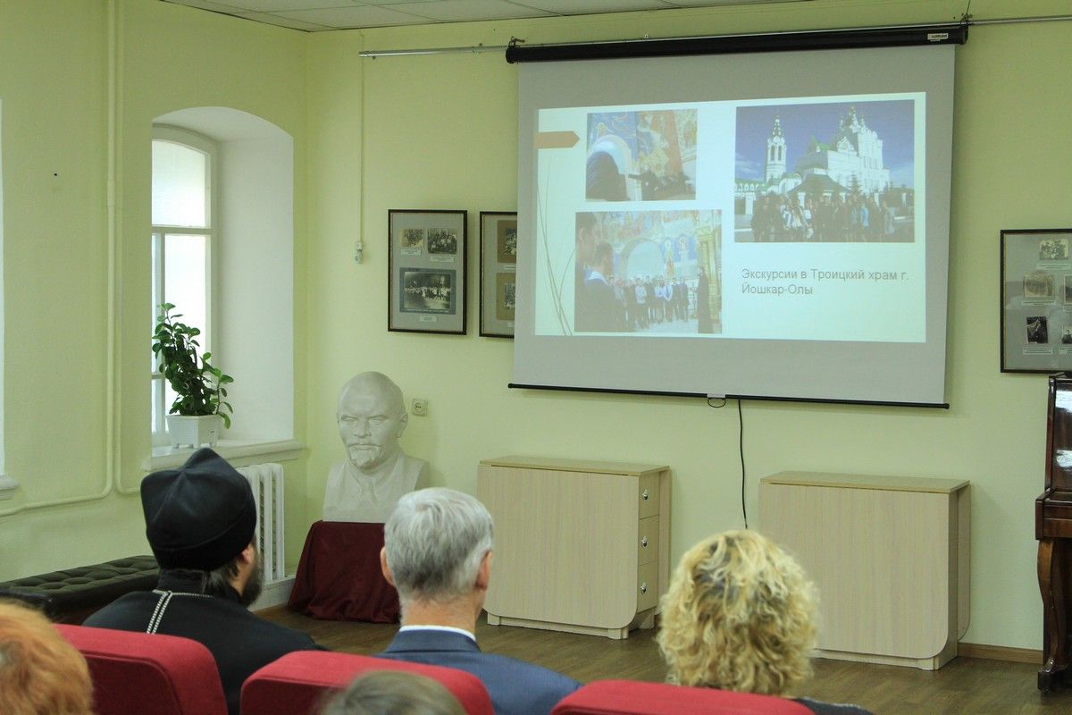 В рамках мероприятия состоялось подведение итогов проекта и обсуждение перспектив развития паломничества на территории Йошкар-Олы. Участников мероприятия приветствовали: руководитель Епархиального отдела религиозного образования и катехизации, благочинный Йошкар-Олинского церковного округа протоиерей Андрей Норкин, заместитель министра молодежной политики, спорта и туризма РМЭ Ирина Юрьевна Камаева, заместитель мэра г. Йошкар-Олы Людмила Андреевна Камаева. С сообщением о проекте «Царевококшайск – град Царя Великого» выступил его руководитель, директор Епархиальной паломнической службы "Елеон" чтец Григорий Михеев.