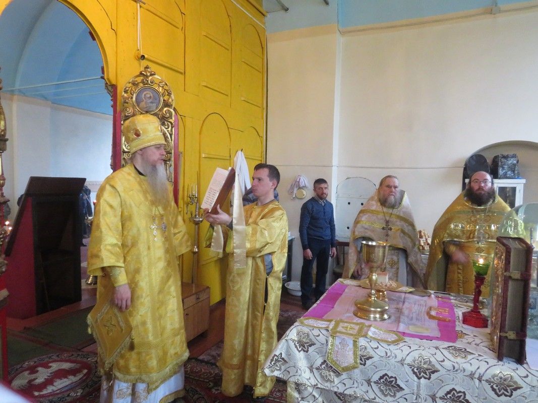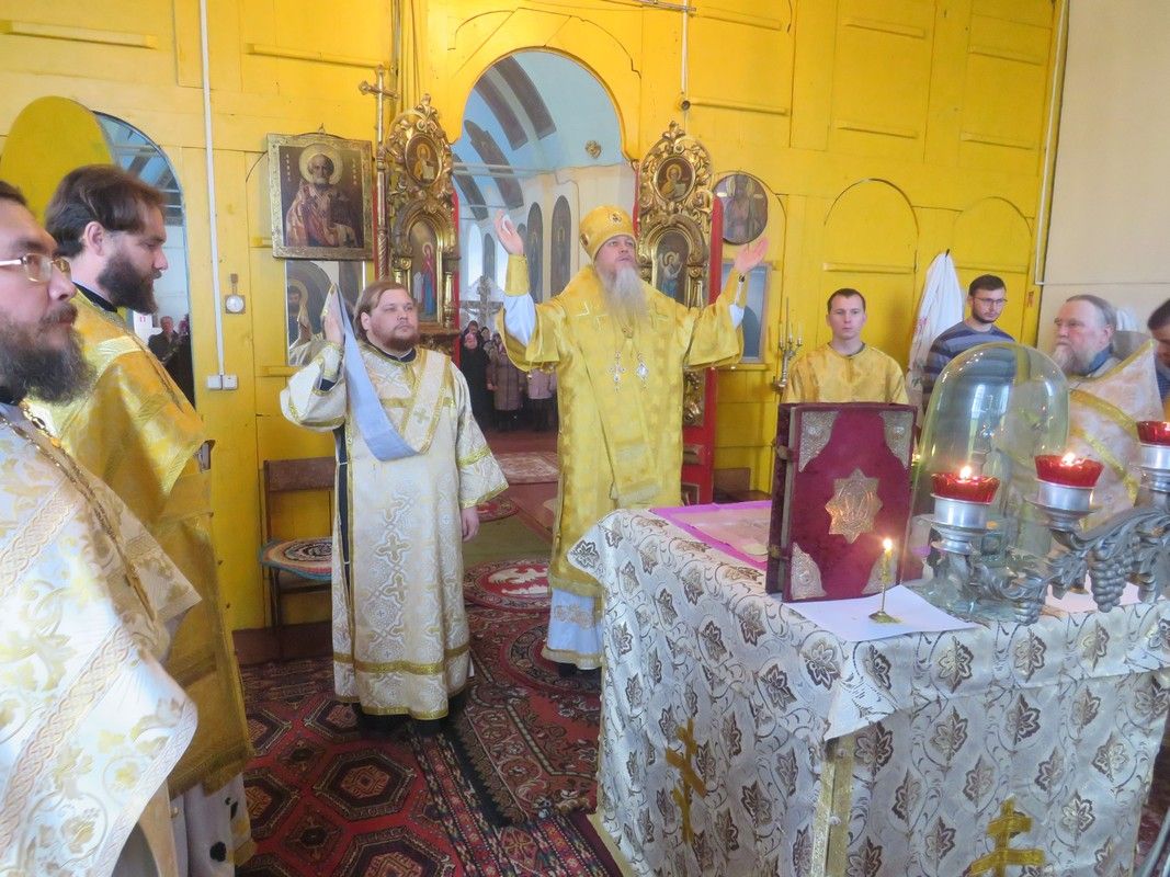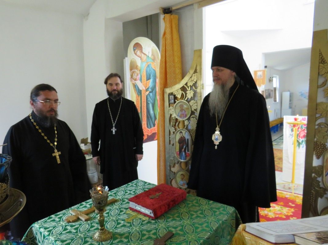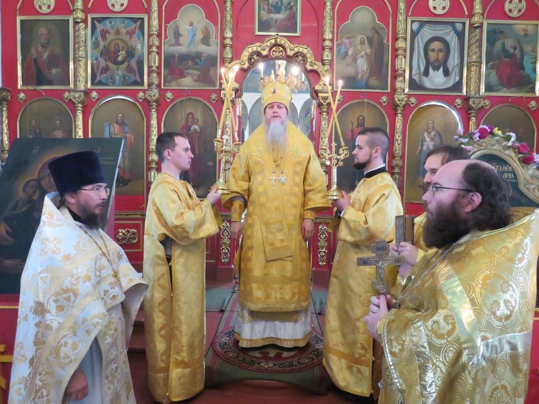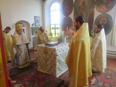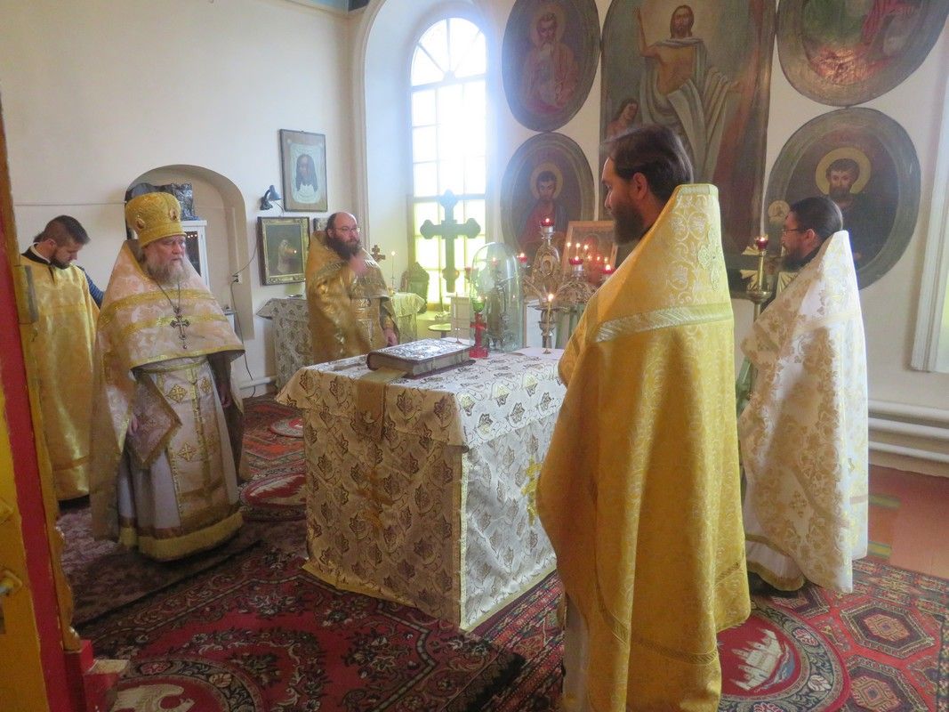 Его Преосвященству сослужили: протоиерей Владимир Власов, благочинный Северного церковного округа, настоятель храма Архангела Михаила п. Сернур; архимандрит Феодор (Соловьев), настоятель храма святого апостола Иоанна Богослова с. Масканур; протоиерей Сергий Бажанов, настоятель храма в честь преподобномученика Андрея Критского с. Елембаево; иерей Сергий Целищев, настоятель храма Рождества Христова с. Пектубаево.