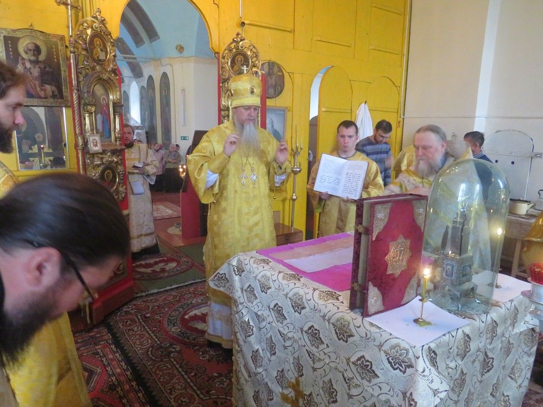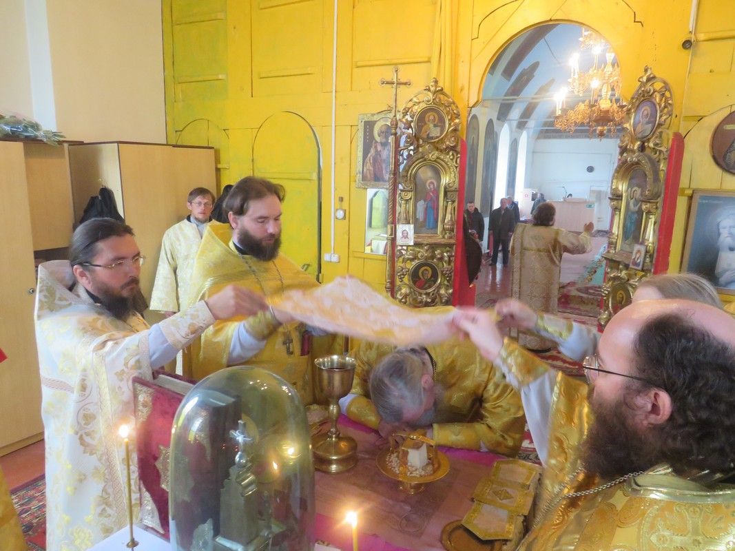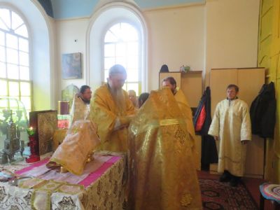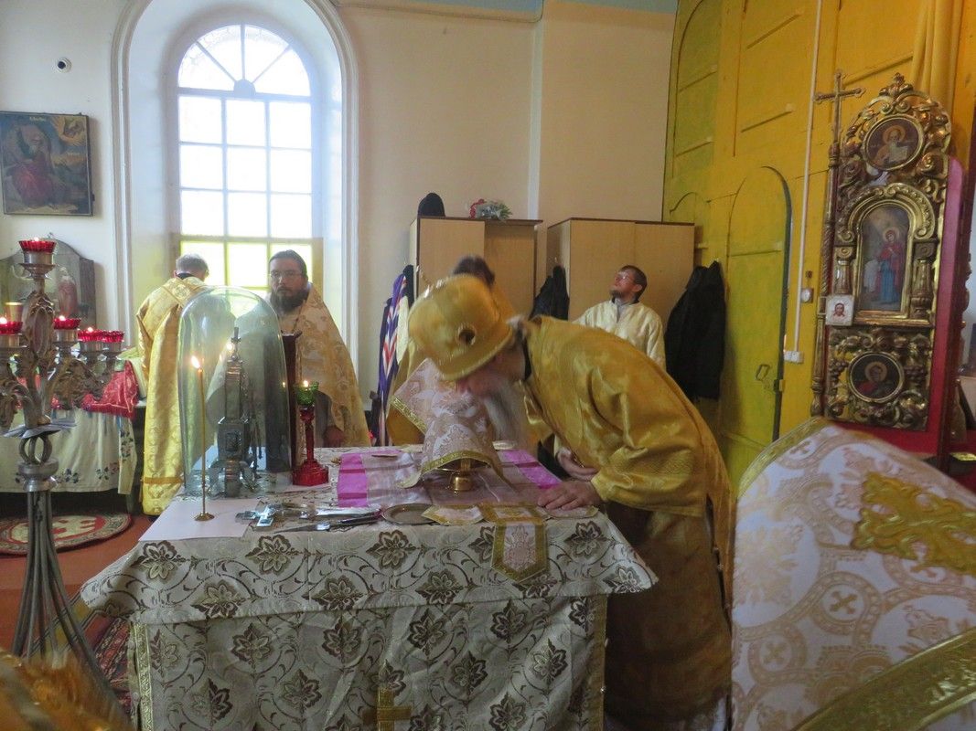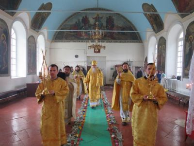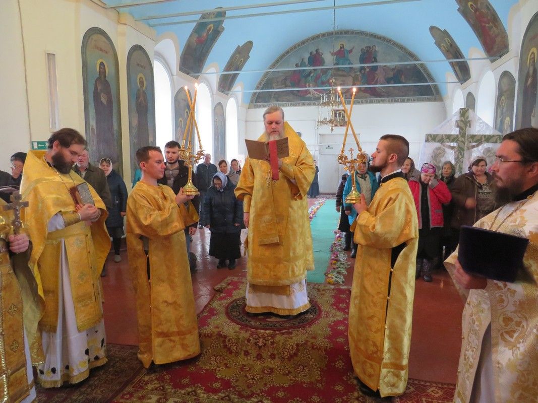 Его Преосвященству сослужили: протоиерей Владимир Власов, благочинный Северного церковного округа, настоятель храма Архангела Михаила п. Сернур; архимандрит Феодор (Соловьев), настоятель храма святого апостола Иоанна Богослова с. Масканур; протоиерей Сергий Бажанов, настоятель храма в честь преподобномученика Андрея Критского с. Елембаево; иерей Сергий Целищев, настоятель храма Рождества Христова с. Пектубаево.
