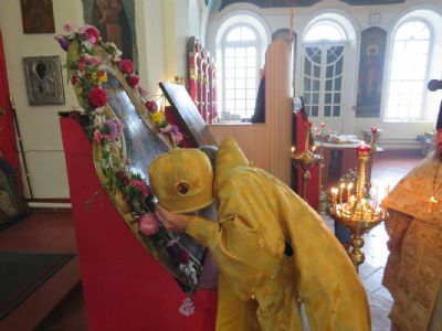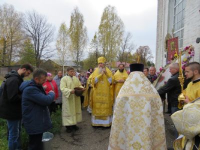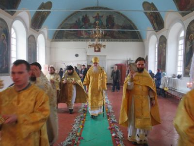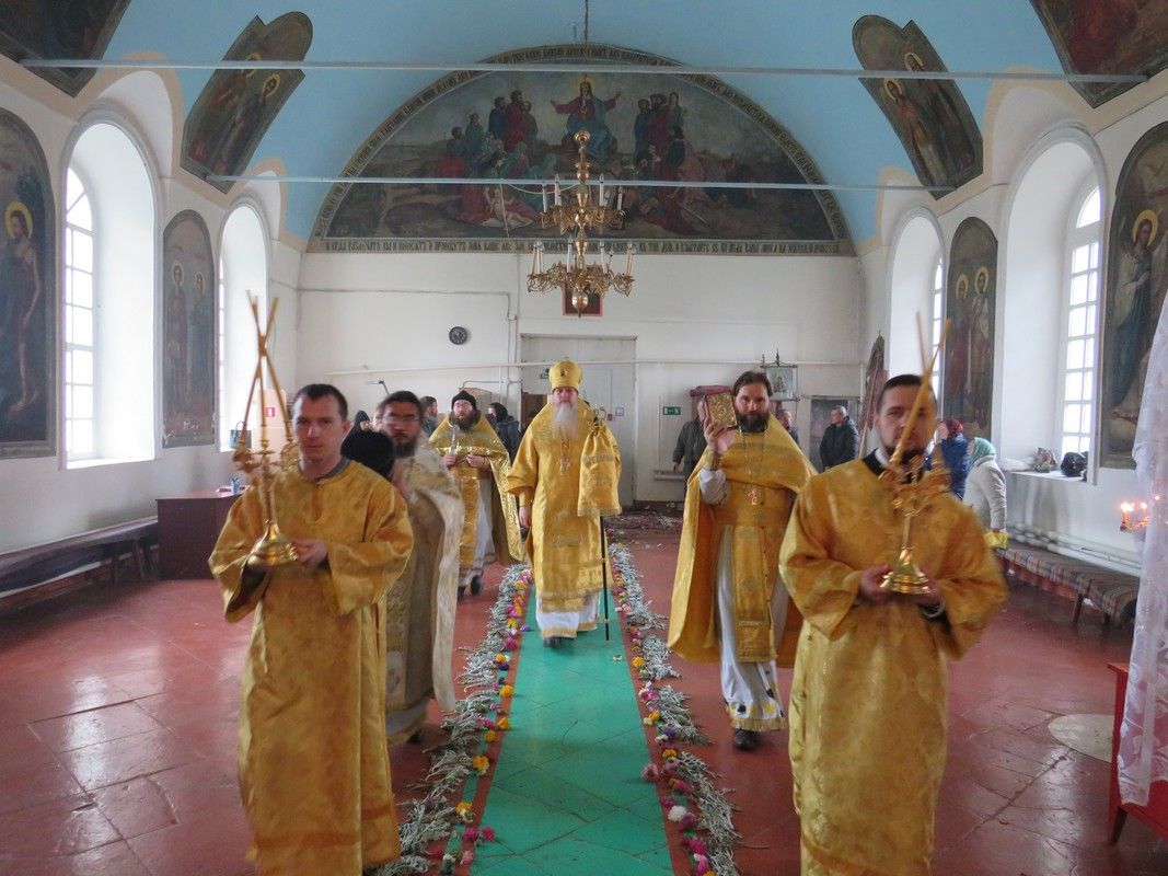 Владыку с цветами встречали прихожане и верующие с соседних сел.