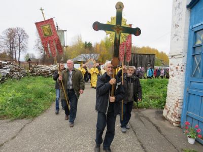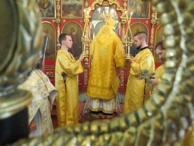 По окончании Божественной литургии владыка Феофан возглавил праздничный крестный ход вокруг храма и окропил всех святой водой. Затем были вознесены молитвы и величание святому апостолу и евангелисту Иоанну Богослову.