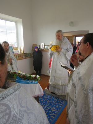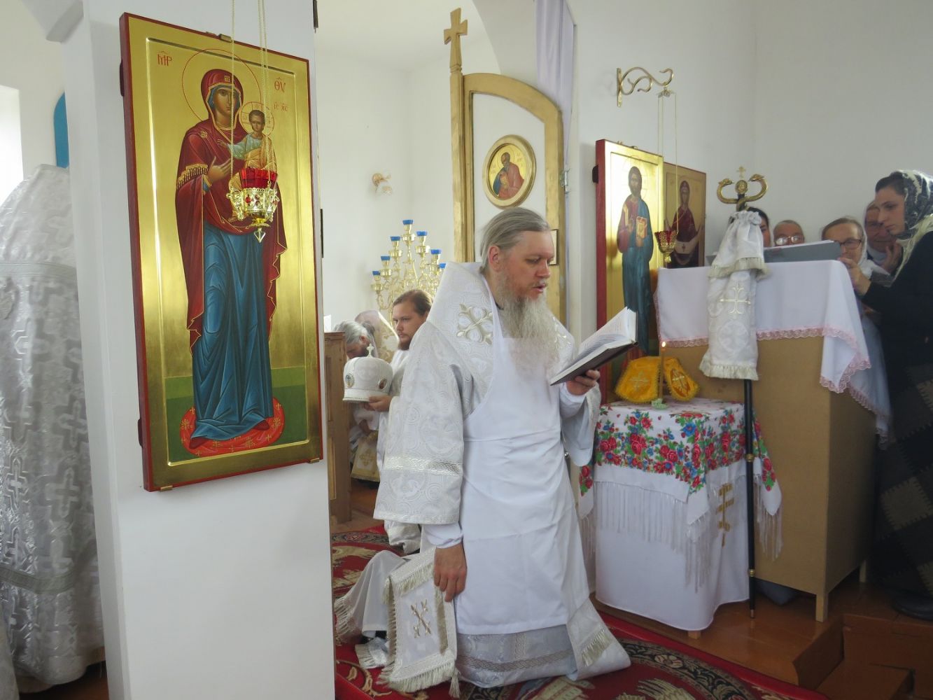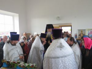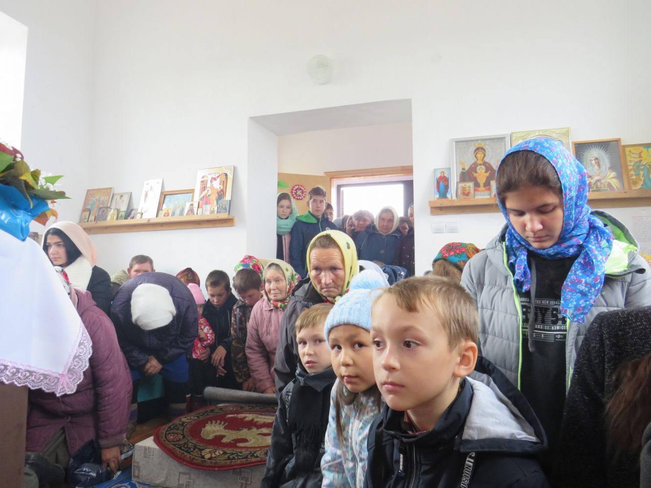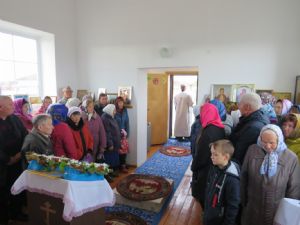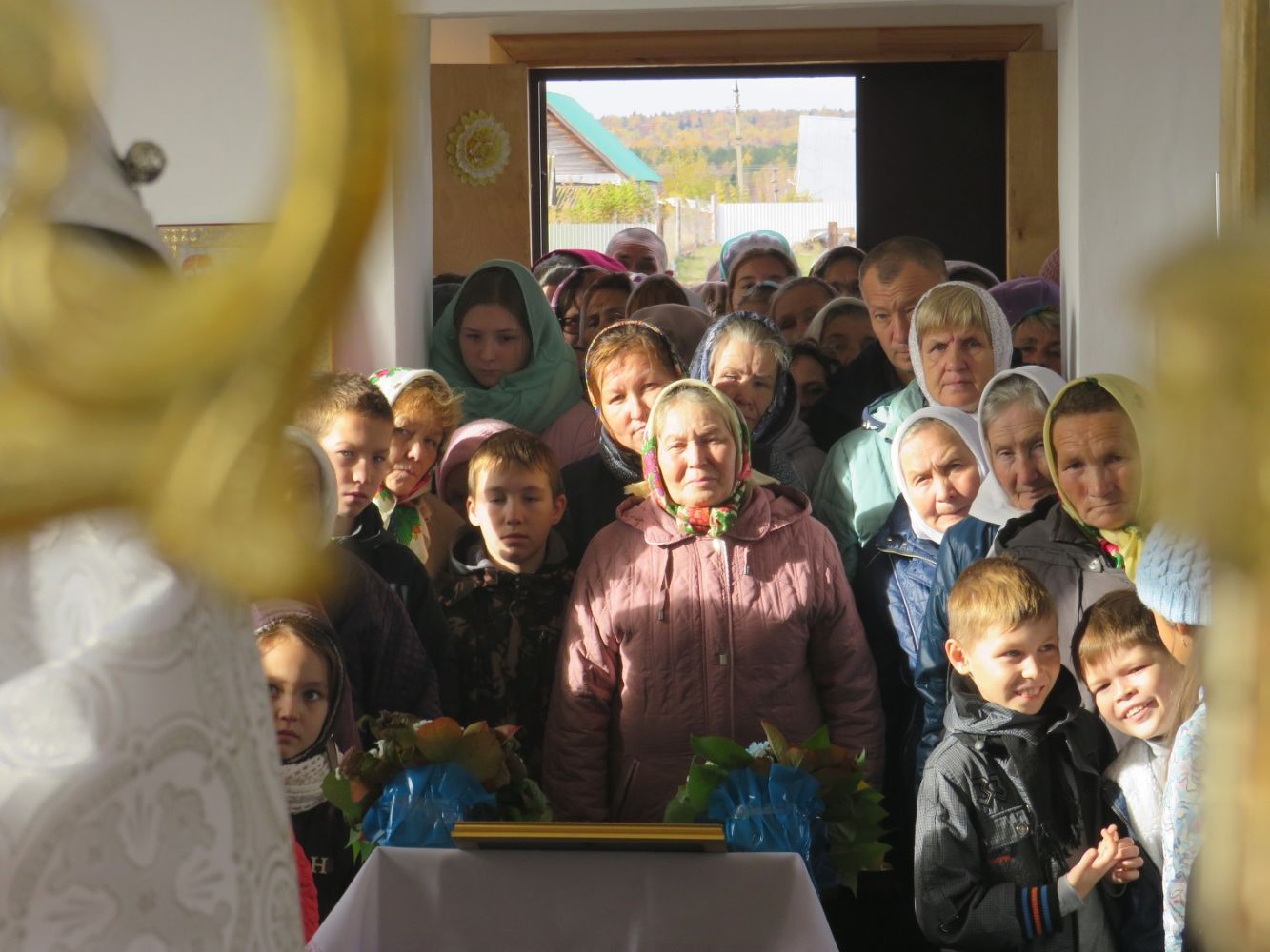 На богослужении присутствовали жители и гости поселка, небольшой храм не вместил всех молящихся.