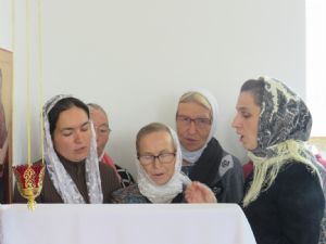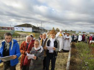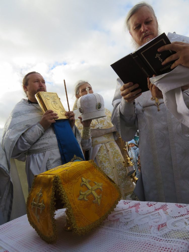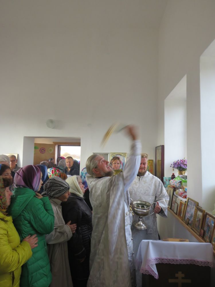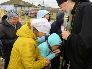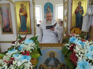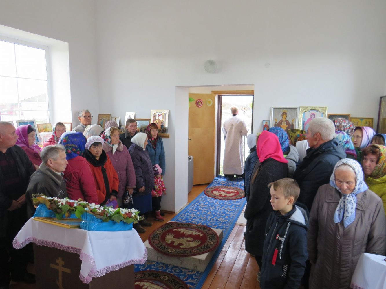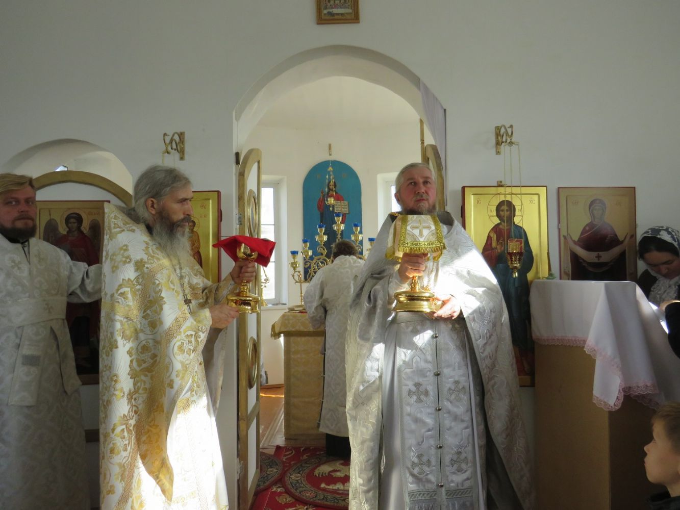 На богослужении присутствовали жители и гости поселка, небольшой храм не вместил всех молящихся.