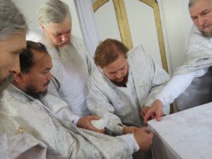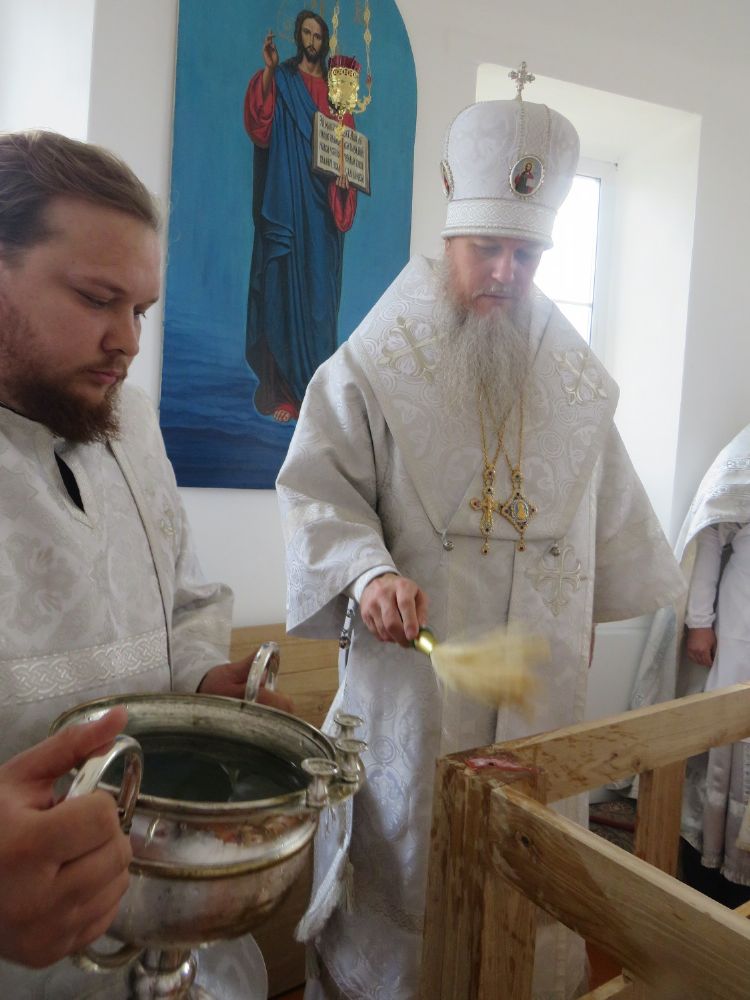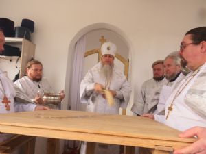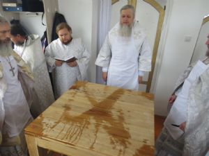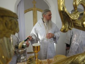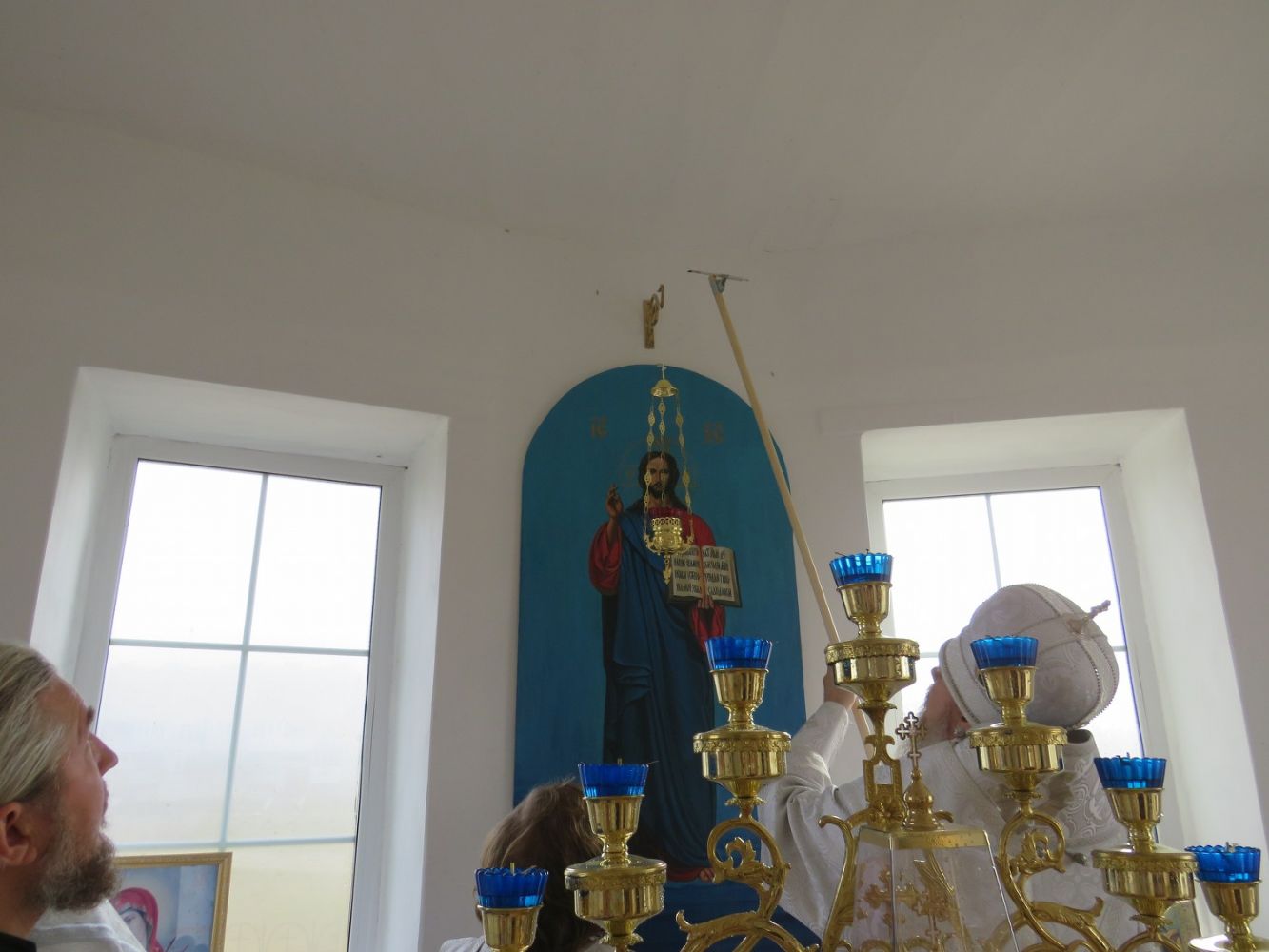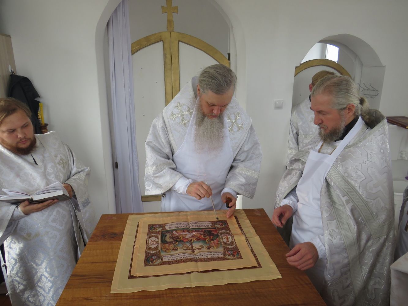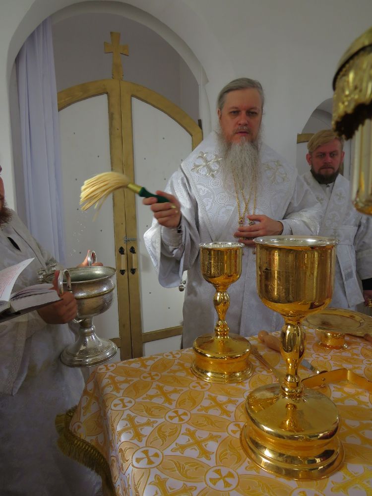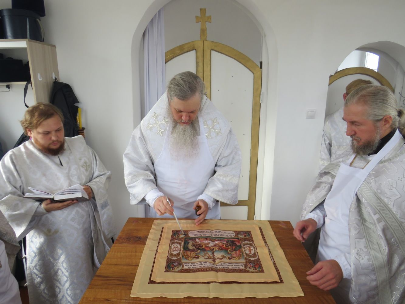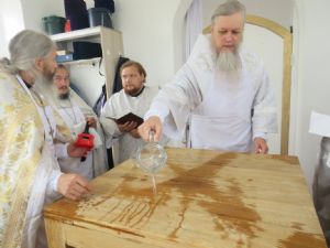 После освящения храма сразу же читаются часы и совершается Божественная литургия.