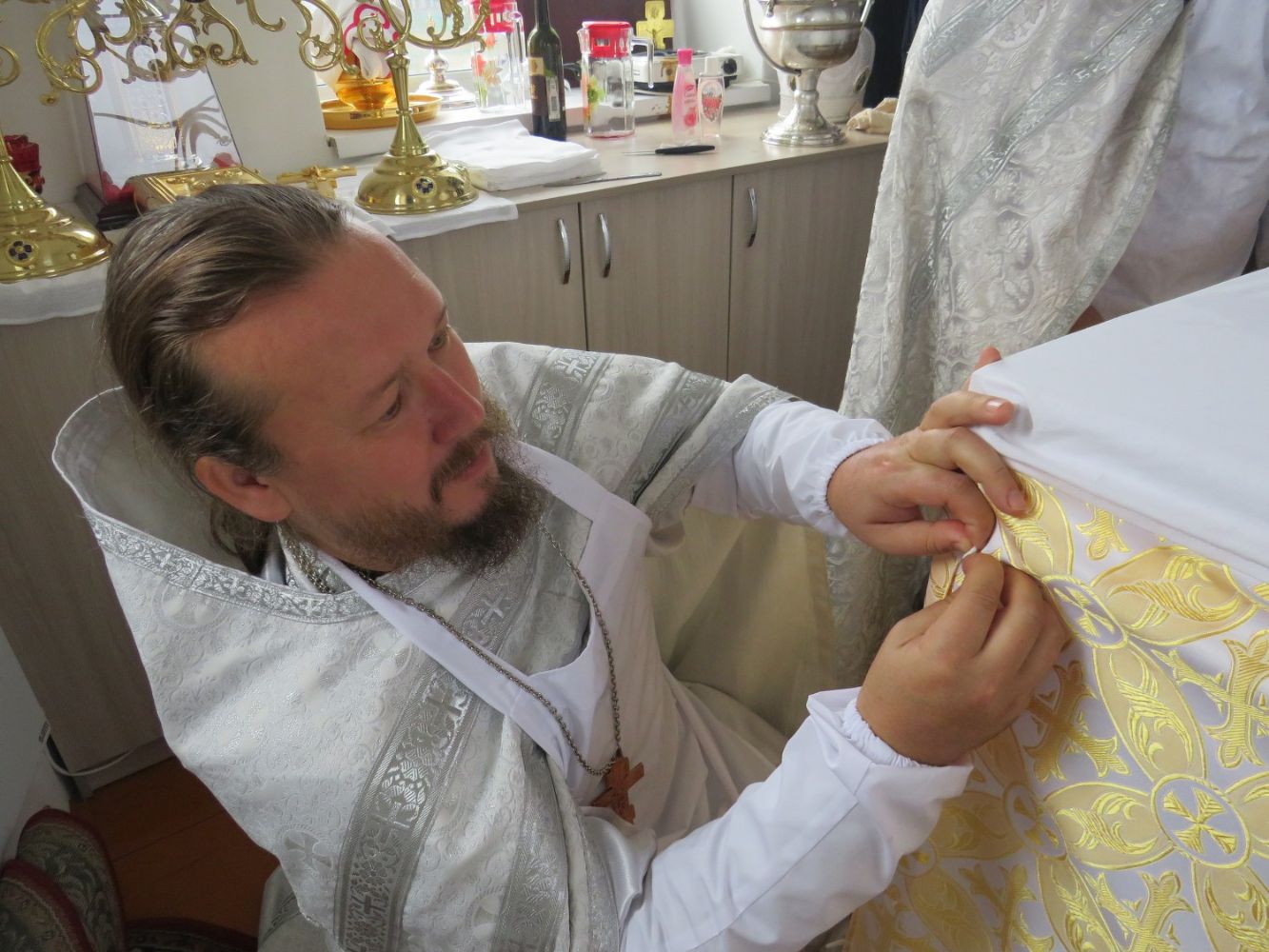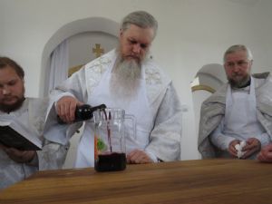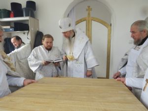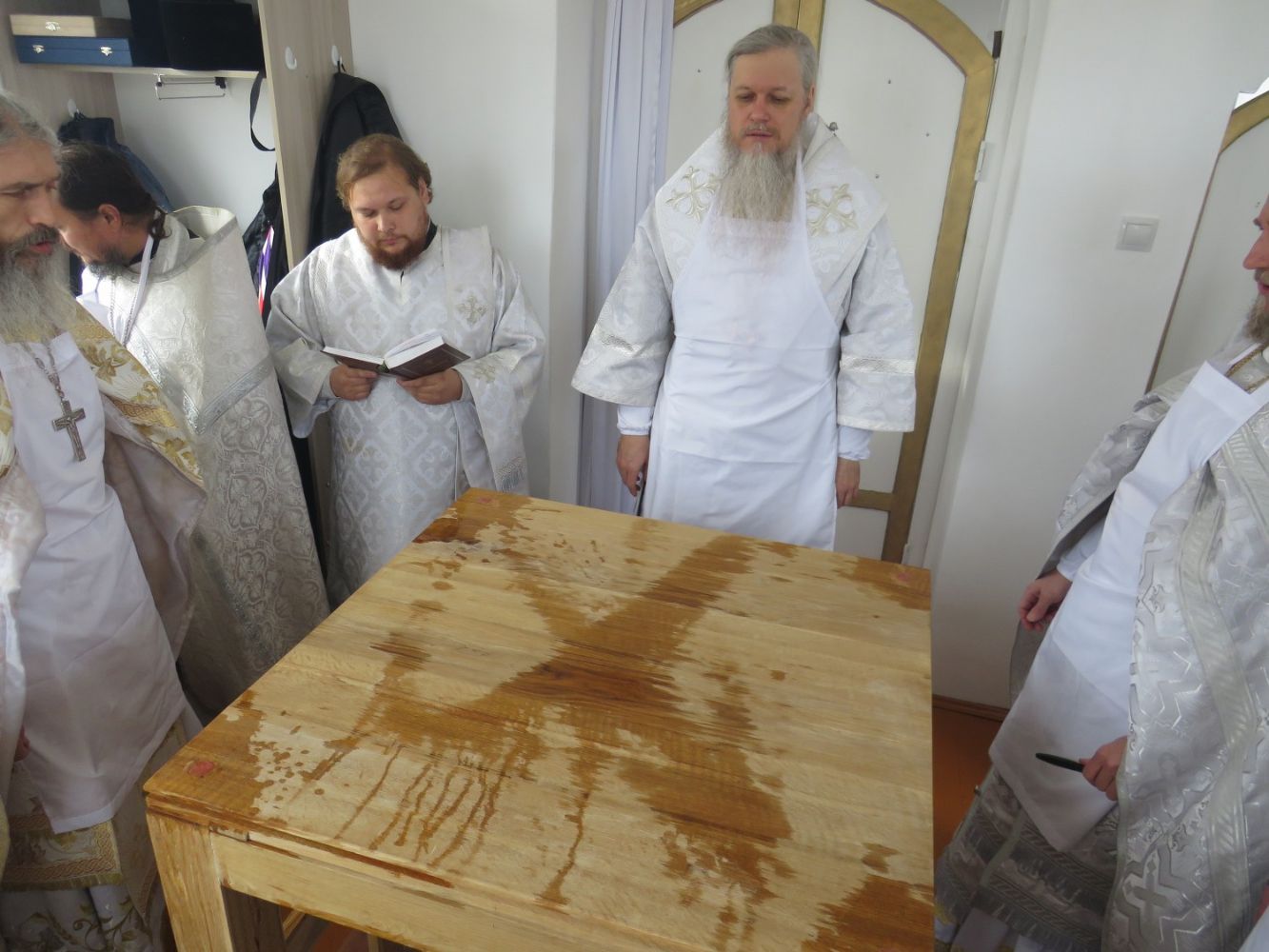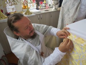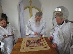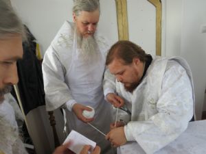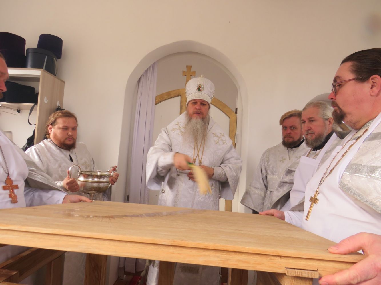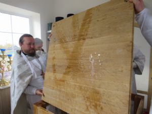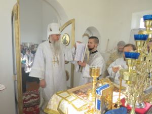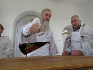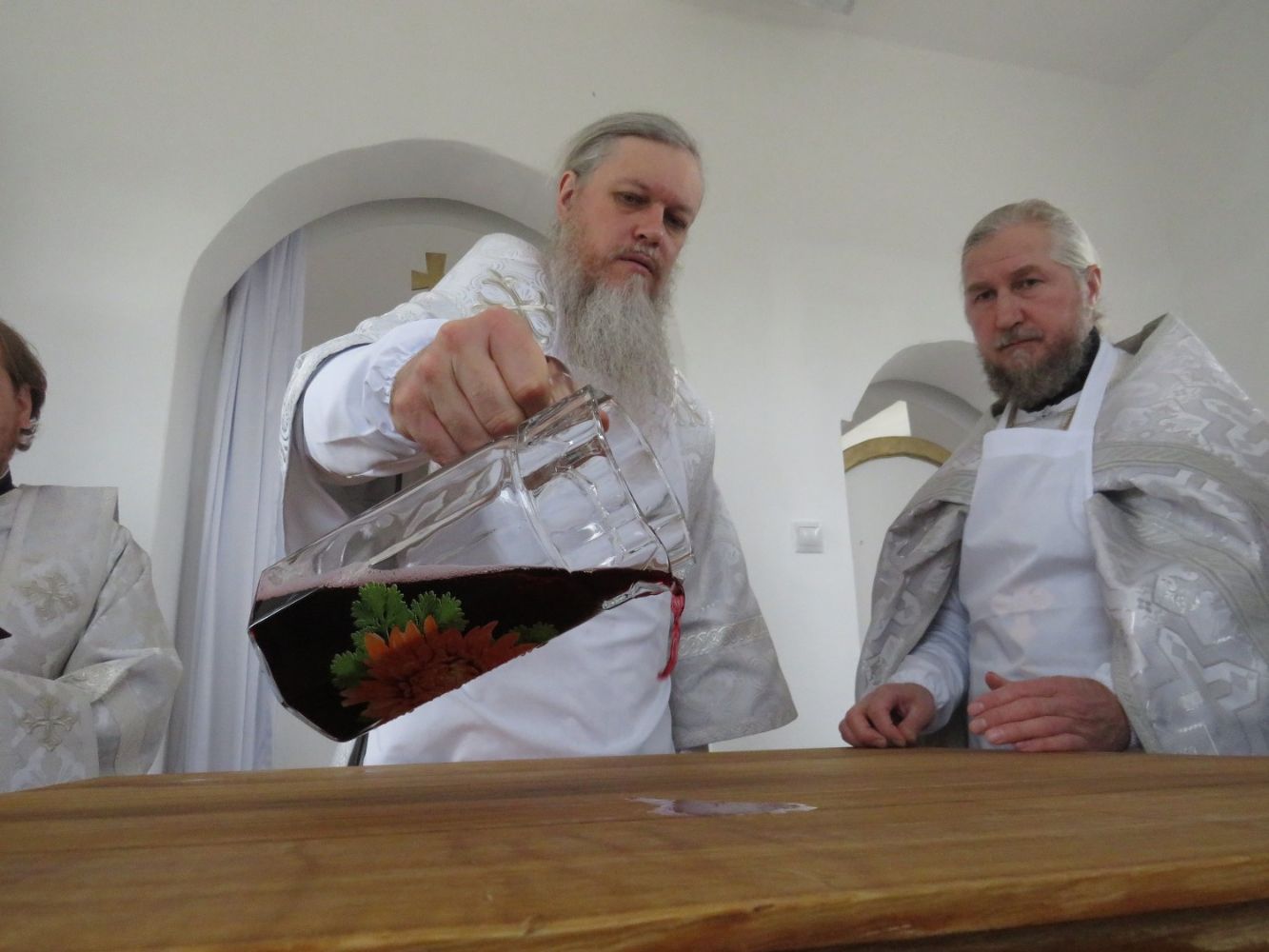 После освящения храма сразу же читаются часы и совершается Божественная литургия.