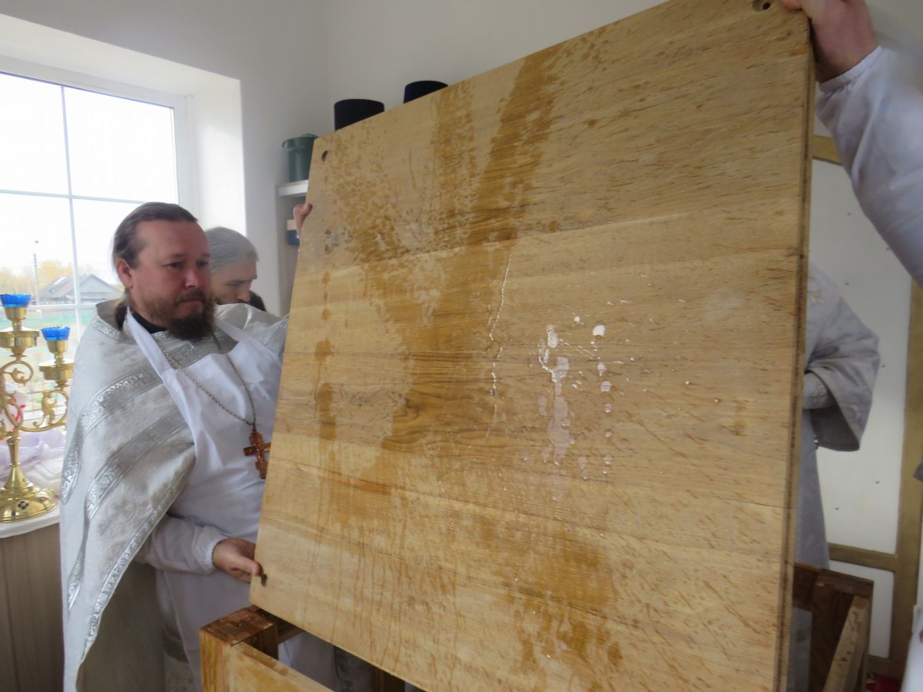 По церковному уставу, освящение храма не должно совершаться в тот самый день, в который празднуется память события, во имя которого сооружена церковь. Освящение совершается до храмового праздника. Поскольку храм в поселке Октябрьский назван в честь Покрова Пресвятой Богородицы, то освящение прошло 11 октября, за три дня до престольного праздника.