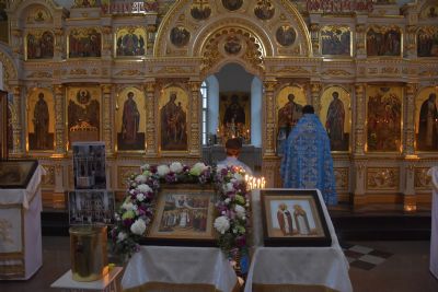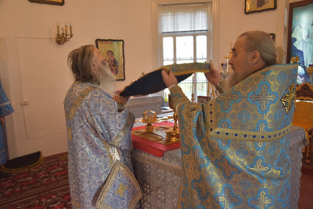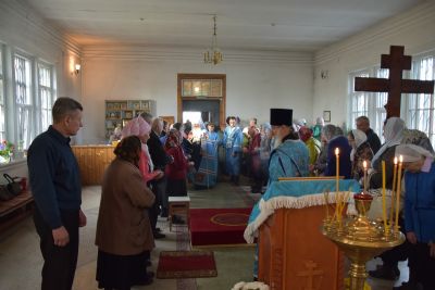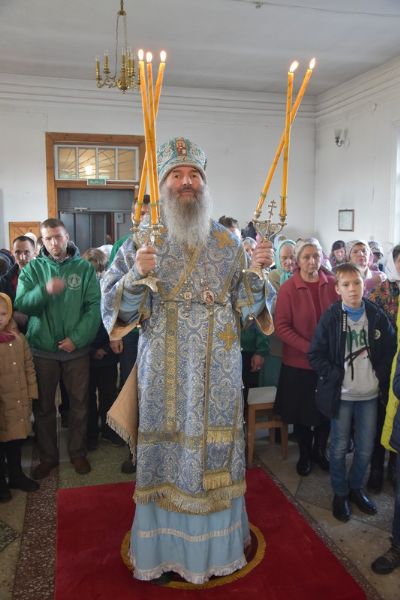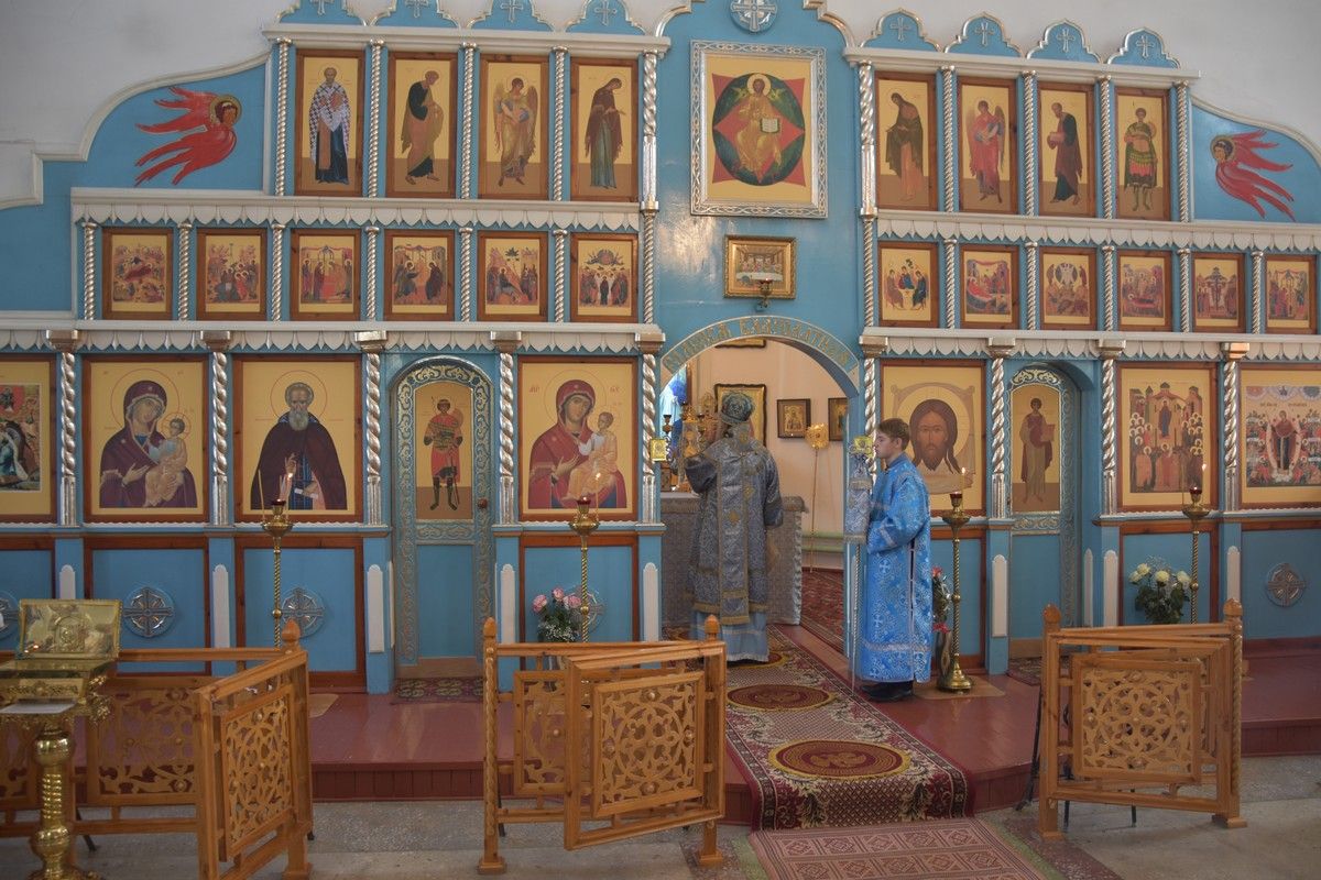 Богослужение началось торжественной встречей архиерея. Песнопения исполнял хор под руководством регента Наталии Поповой. За Литургией вознесли особые молитвы о мире в Украине и единении Православной Церкви.