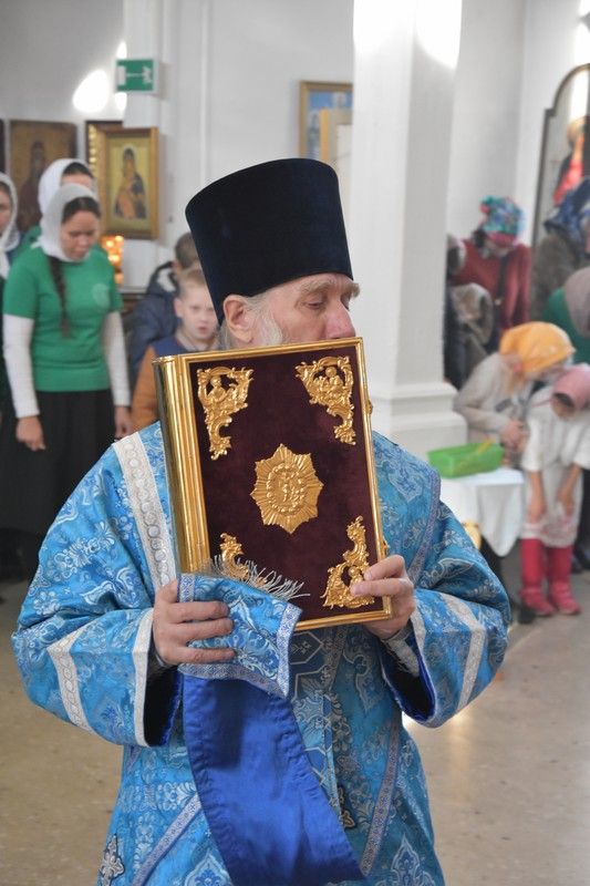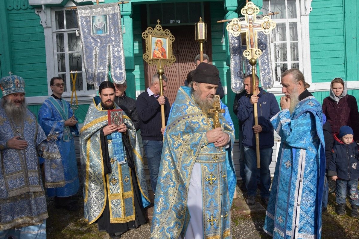 После Литургии прошел крестный ход вокруг храма с кроплением святой водой и чтением Евангелия. Затем митрополит Иоанн обратился к собравшимся: «Всех вас возлюбленные братия и сестры, поздравляю с престольным праздником, днем Державы Российской, над которою Пречистая Богоматерь распростерла свой Пречистый Покров, а Ее дети – чада Православной Церкви восклицают сегодня: «Радуйся Заступница усердная, радуйся Радосте наша, покрый нас от всякого зла честным Твоим омофором!