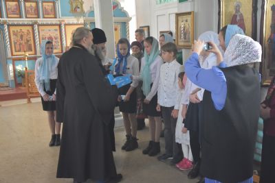 После богослужения ученики воскресной школы представили музыкальную программу, исполнив песни и стихи.