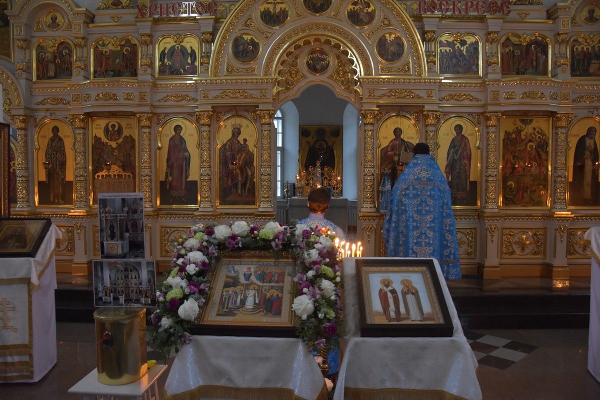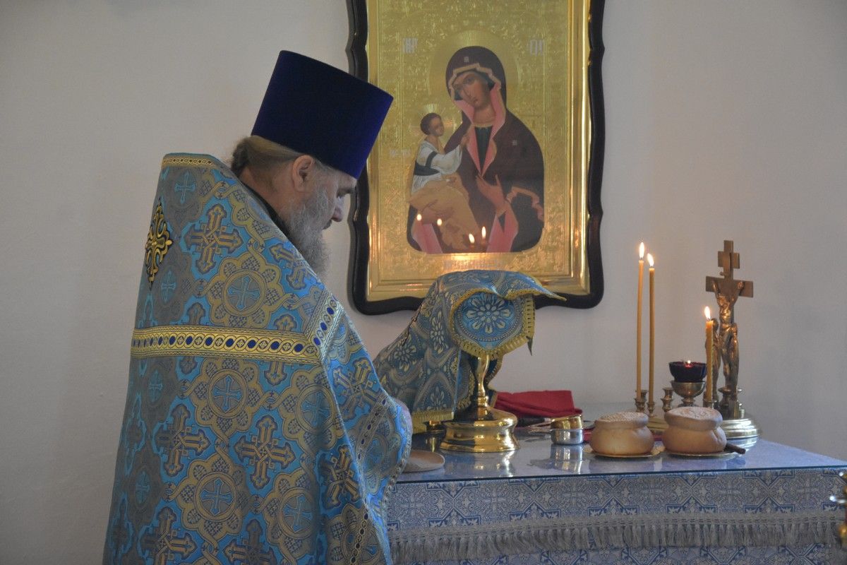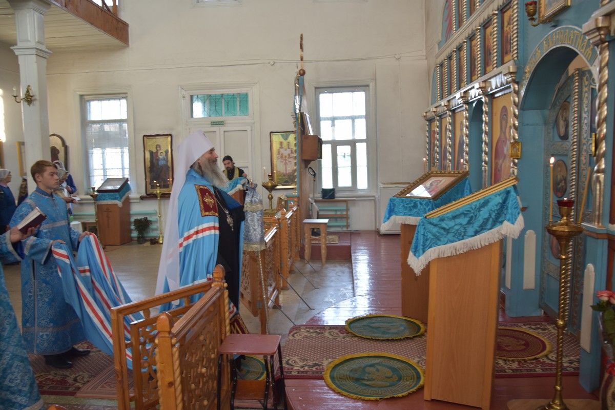 Владыке сослужили настоятель храма протоиерей Валентин Пылаев и клирик храма Рождества Пресвятой Богородицы села Семеновка протодиакон Михаил Козловский.