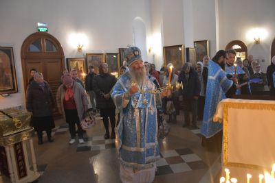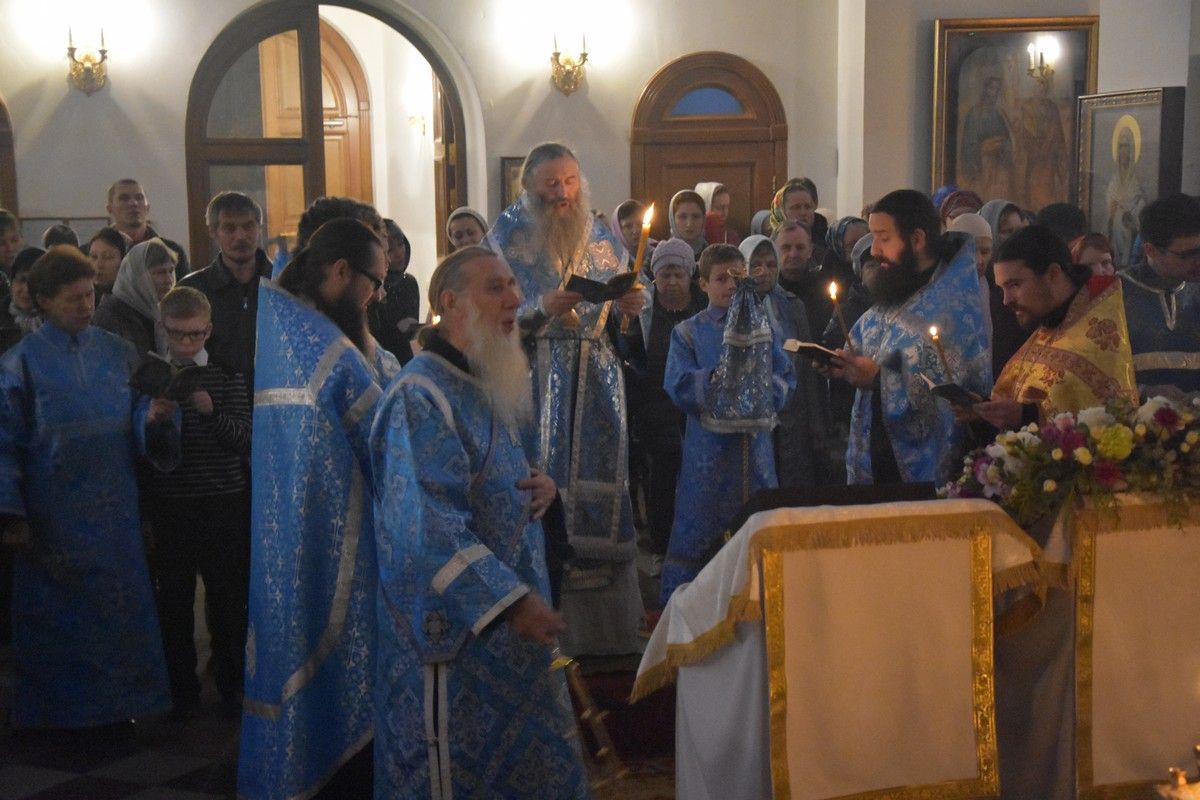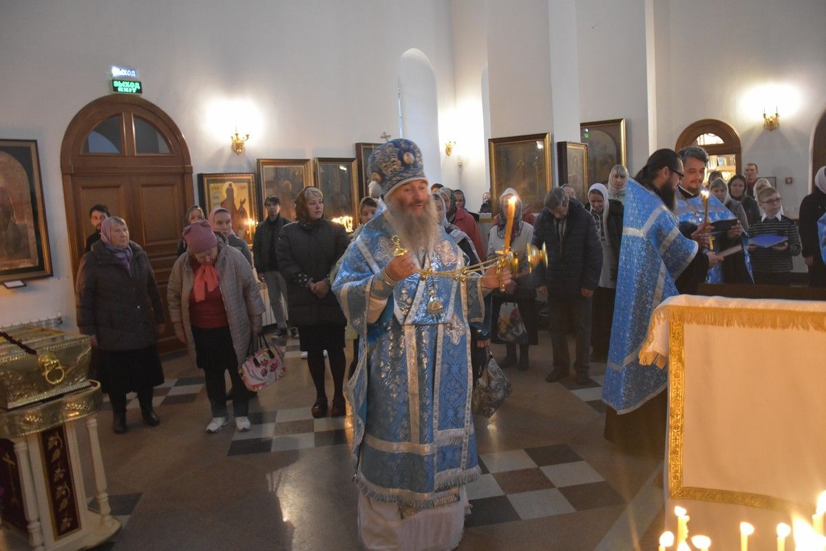 14 октября вечером митрополит Иоанн возглавил вечерню с пением акафиста Пресвятой Богородицы в храме Рождества Христова города Йошкар-Олы. Владыке сослужили настоятель храма иерей Александр Лоскутов и клирики храма иереи: Никита Смирнов, Димитрий Дьяков, Евгений Симаков.