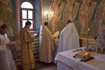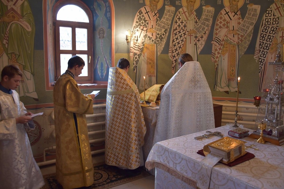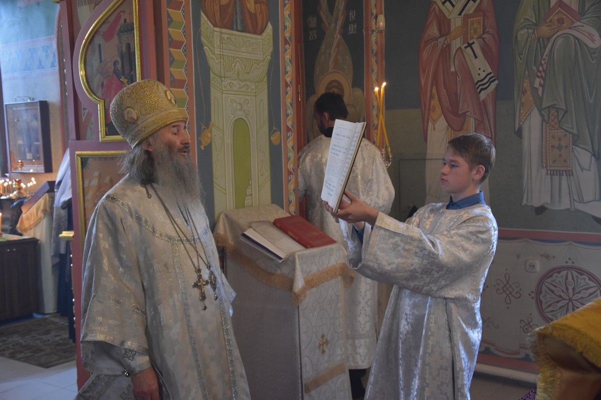 Владыке сослужили: секретарь Йошкар-Олинского епархиального управления иеромонах Серафим (Пасанаев), клирики храма Рождества Пресвятой Богородицы села Семеновка иерей Сергий Асланов и протодиакон Михаил Козловский.