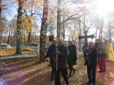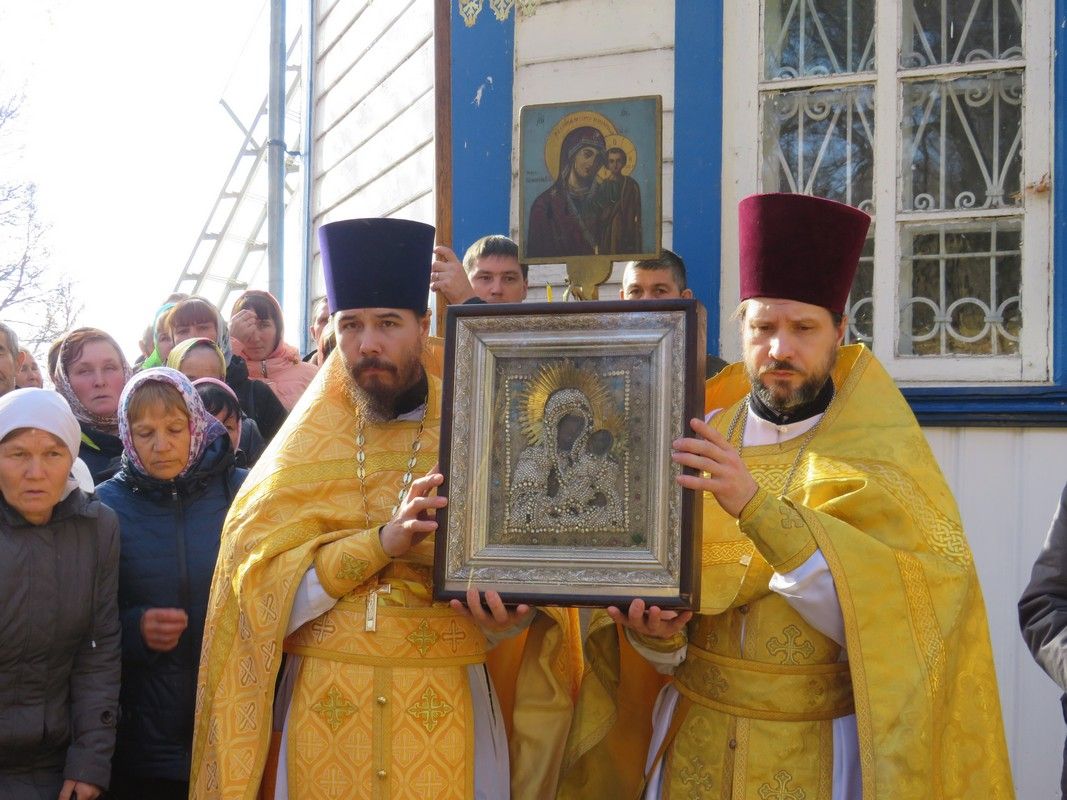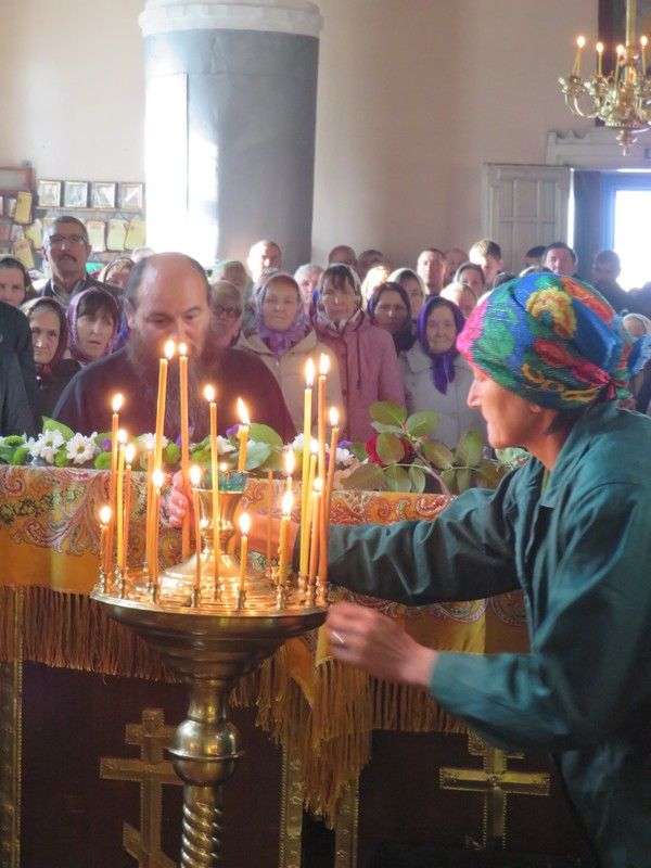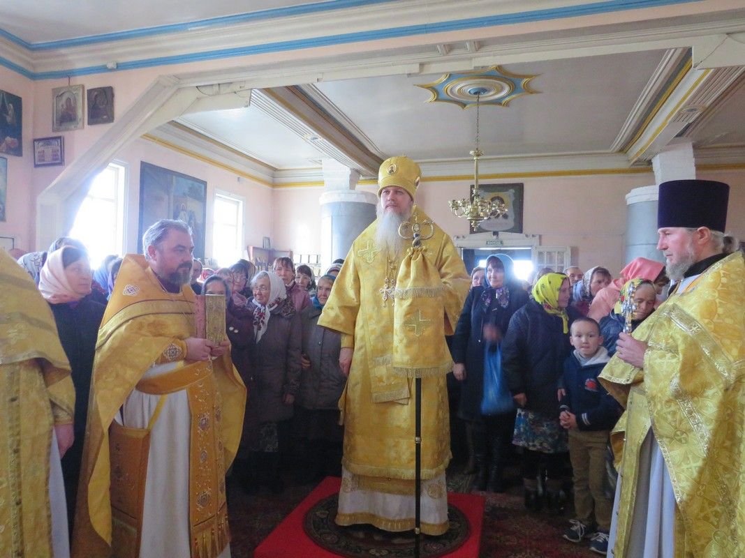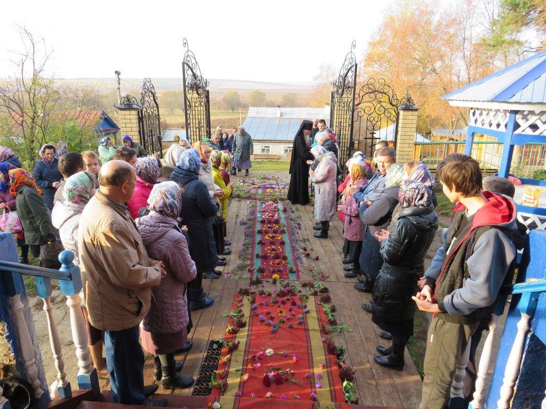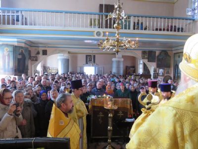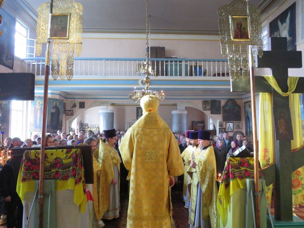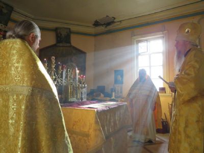Епископ Феофан совершил здесь Божественную литургию, а также молебен с крестным ходом вокруг храма. Его Преосвященству сослужили: благочинный Волжского церковного округа, настоятель храма святителя Гурия села Петъял протоиерей Виталий Михеев, настоятель храма Богоявления Господня протоиерей Леонтий Очетов, настоятель храма Пресвятой Троицы села Помары иерей Сергий Петров, настоятель храма Пресвятой Троицы иерей Игорь Сапаев, клирики Никольского кафедрального собора города Волжска иерей Алексий Скрябин, иерей Сергий Першаков, диакон Иоанн Захаров.