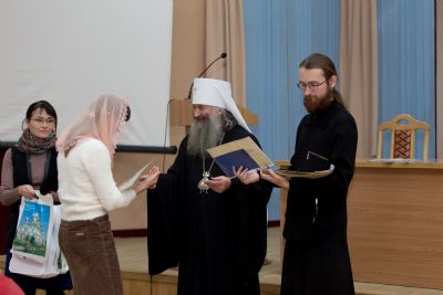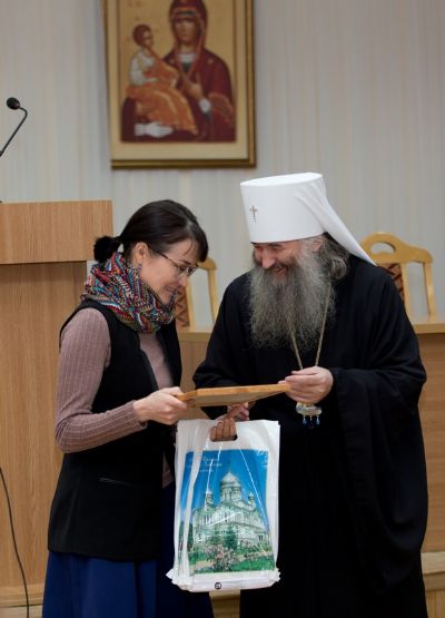 В Православном центре г. Йошкар-Олы участники мероприятия встретились с Главой Марийской митрополии, митрополитом Йошкар-Олинским и Марийским Иоанном. За большой вклад в развитии паломничества в Йошкар-Олинской и Марийской епархии владыка наградил архиерейской грамотой Алевтину Петровну Лощилову. Вручил благодарственные письма заместителю министра молодежной политики, спорта и туризма И. Ю. Камаевой, консультанту Отдела организации и координации туристской деятельности Минспорттуризма РМЭ М. В. Соколовой, руководителю туристско-информационного центра г. Йошкар-Олы М.В. Ивановой и заведующей отделом развития и связей с общественностью Музея истории города Йошкар-Олы И.В. Юдиной. Выпускникам Курсов повышения квалификации экскурсоводов, прошедших в сентябре-октябре, были вручены удостоверения.