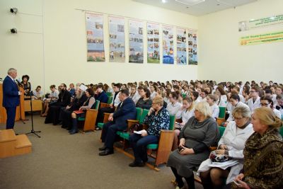Собравшихся так же приветствовали Министр здравоохранения РМЭ М. В. Панькова, Председатель Йошкар-Олинской городской организации ветеранов войн, труда, вооруженных сил и правоохранительных органов Г.М.Мустаев, главный врач РКГВВ А. В. Смирнов и директор Йошкар-Олинского медколледжа Л.В. Рыжков.
