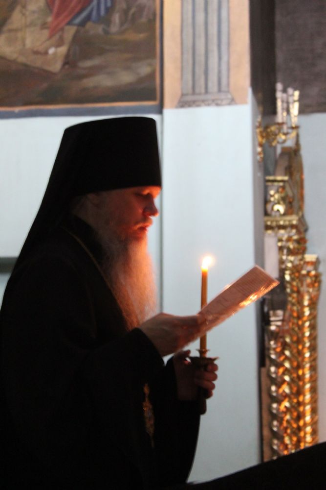 Его Преосвященству сослужили клирики собора: протоиерей Валерий Федоров, иерей Сергий Першаков и диакон Иоанн Захаров.