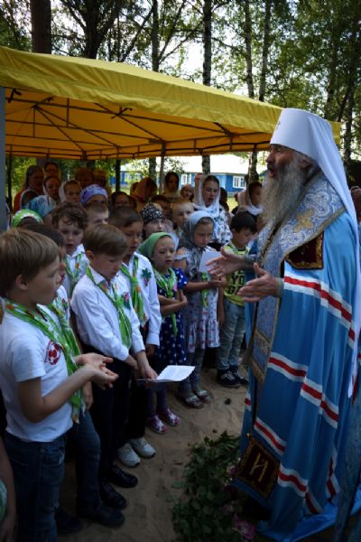 25 июня митрополит Йошкар-Олинский и Марийский Иоанн посетил детский лагерь "Радужный". Владыку встретили администрация лагеря, священнослужители и дети.