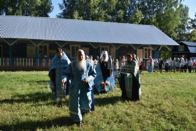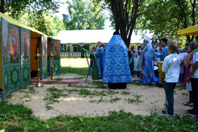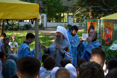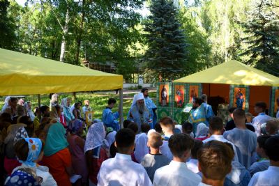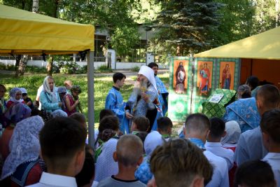 После осмотра территории лагеря митрополит Иоанн возглавил молебен Пресвятой Богородице перед иконой Ее "Мироносицкая".
