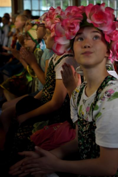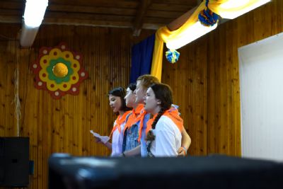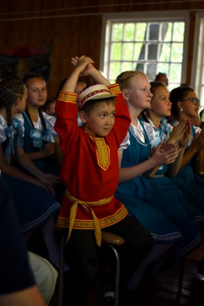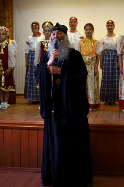 Затем в клубе дети и вожатые представили свои отряды, исполнили песни и танцы. Перед выступлением отрядов Владыка обратился с проповедью о пребывании Царствия Божия в детских сердцах. Митрополит Иоанн призвал заботясь о физическом здоровье не забывать и о душе.