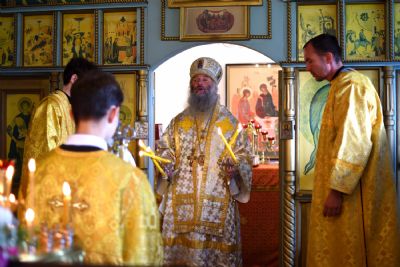 30 июня, в воскресенье, митрополит Иоанн возглавил Божественную литургию в храме Всех святых, в земле Русской просиявших, в п. Советский.
