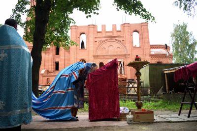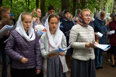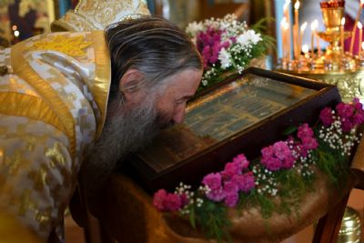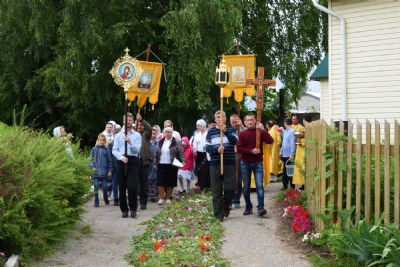 По окончании Литургии прошел крестный ход вокруг храма с кроплением святой водой и чтением Евангелия. Затем митрополит Иоанн обратился к собравшимся с проповедью о подвиге наших соотечественников и сродников во время богоборчества.