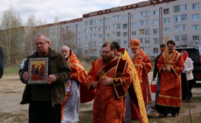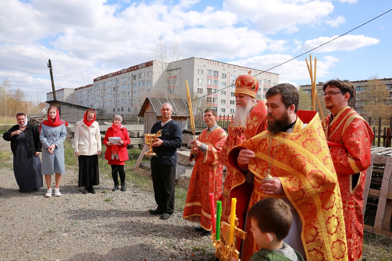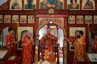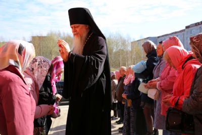 По окончании Литургии епископ Феофан совершил чин малого освящения воды, после чего состоялся традиционный пасхальный крестный ход.