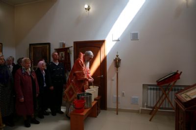 После богослужения владыка обратился к собравшимся с архипастырским словом, напомнив исторические события обретения в V веке воином Львом Маркеллом близ Константинополя источника Пречистой Божией Матери, от вод которого совершалось множество чудесных исцелений. Став впоследствии императором, Лев Маркелл построил храм над источником, тогда же была написана икона, где изображена Пречистая Божия Матерь с Богомладенцем, символично находящаяся в чаше с водой, из которой изливаются струи живоносного исцеляющего источника. По Уставу Православной Церкви в пятницу Светлой седмицы совершается празднование иконе Божией Матери «Живоносный Источник» и совершается освящение воды.
